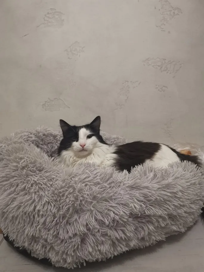 Супер-плюшка! Кота очень впечатлила! Нас с мужем тоже - может, теперь в ней спать будет, а не у нас в ногах! Устали спать в позе зародышей. Для мейн-куна взяли 70 см. Думаю, как раз отлично. Бортики мягкие, даже если в полный рост вытянется, нормально будет. Очень мягкая и тёплая