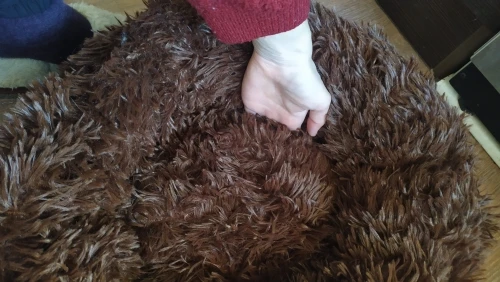 Материал очень приятный, такой и искала. Брала на 60см, и она для крупного кота оказалась немного великовата. Материал распределен неравномерно, и приминается через какое-то время, однако моему коту в принципе не нравится набивка, поэтому для нас это оказался плюс. В принципе изделие соответствует фото и ожиданиям. Пушистый влюблен без остатка))