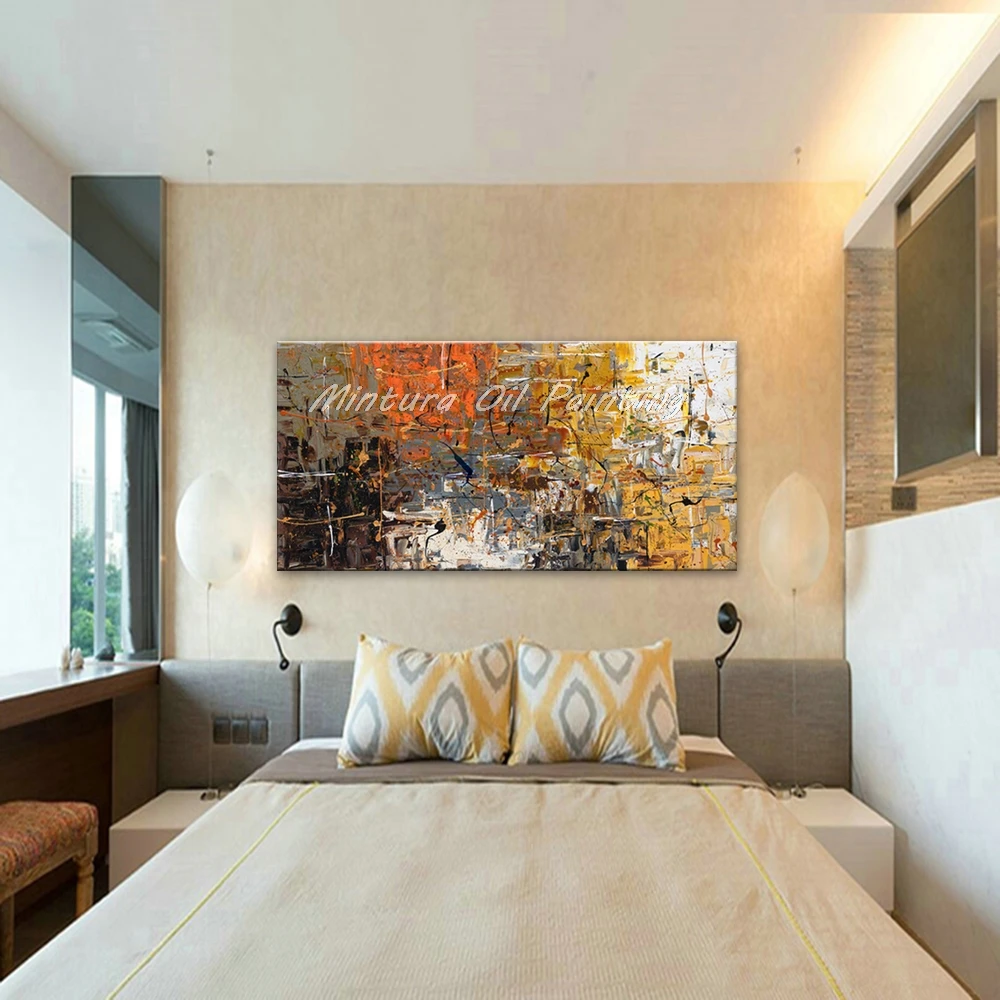 Настенные картины Mintura для гостиной, Абстрактные цветные блоки, ручная роспись, акриловая картина маслом, декор для отеля, без рамки