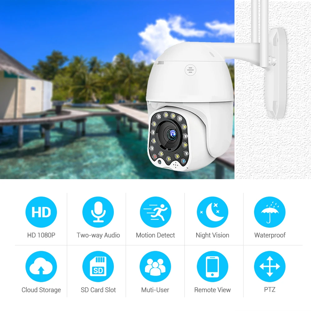 Hamrolte HD 1080P Wi-Fi камера, 4-кратный цифровой зум, мини PTZ камера, автоматическое слежение, двусторонняя аудиосвязь, водонепроницаемый, наружный светильник сирены YCC365