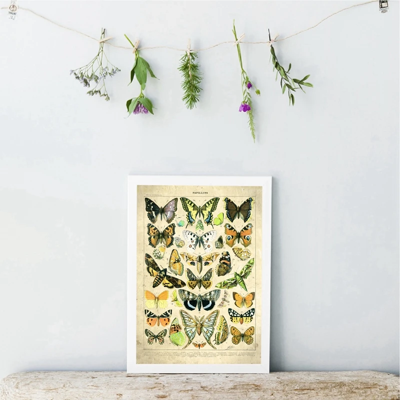 Французский бабочка Винтаж Плакаты и принты насекомых Пособия по биологии обучающая схема Кухня Wall Art Холст Картина домашний декор