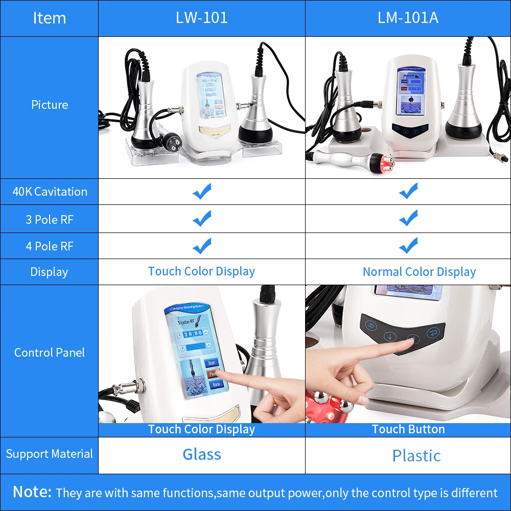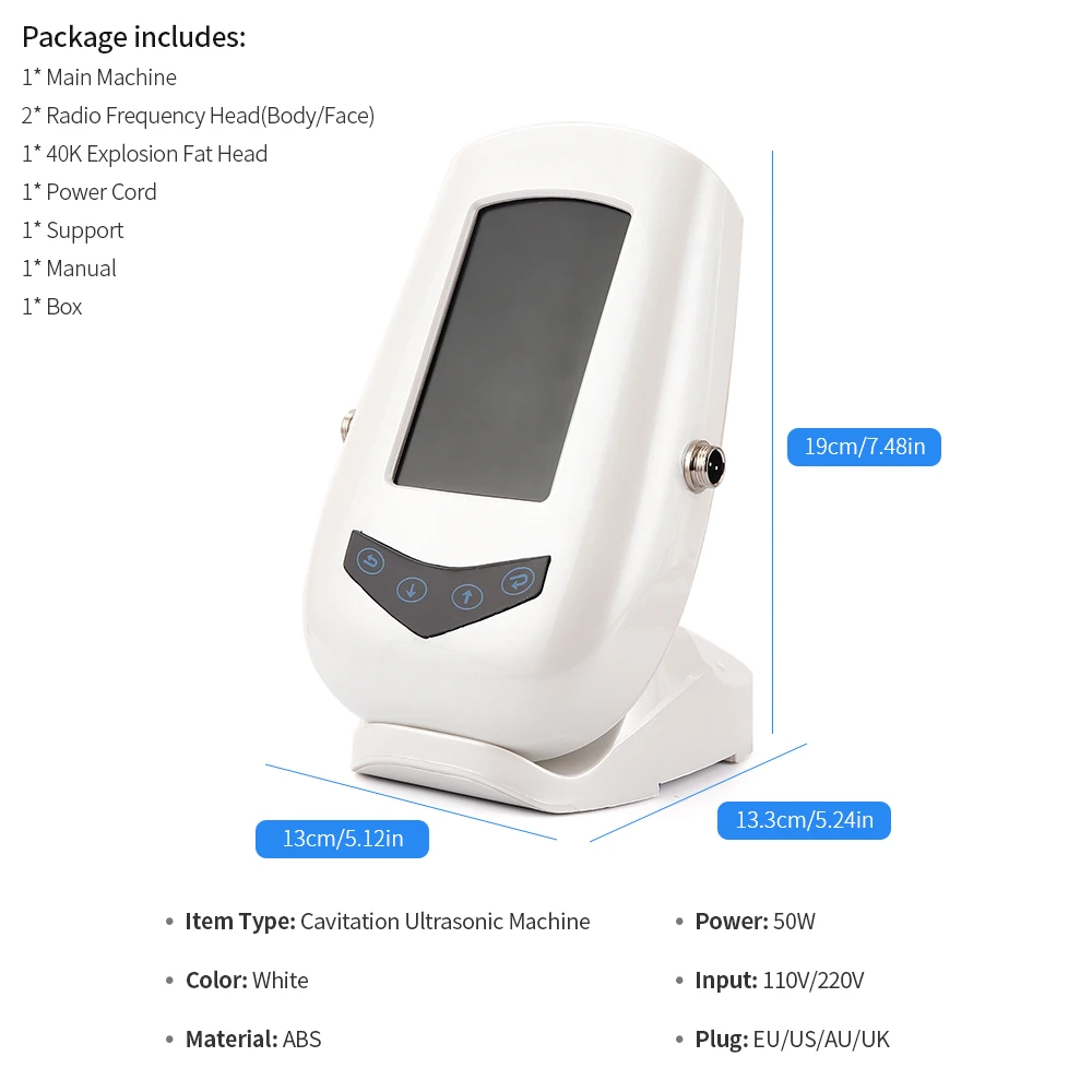 Ультразвуковая кавитация работает, RF головки не нагреваются почти ничего и работают прерывистыми. Я не знаю, есть ли результаты.