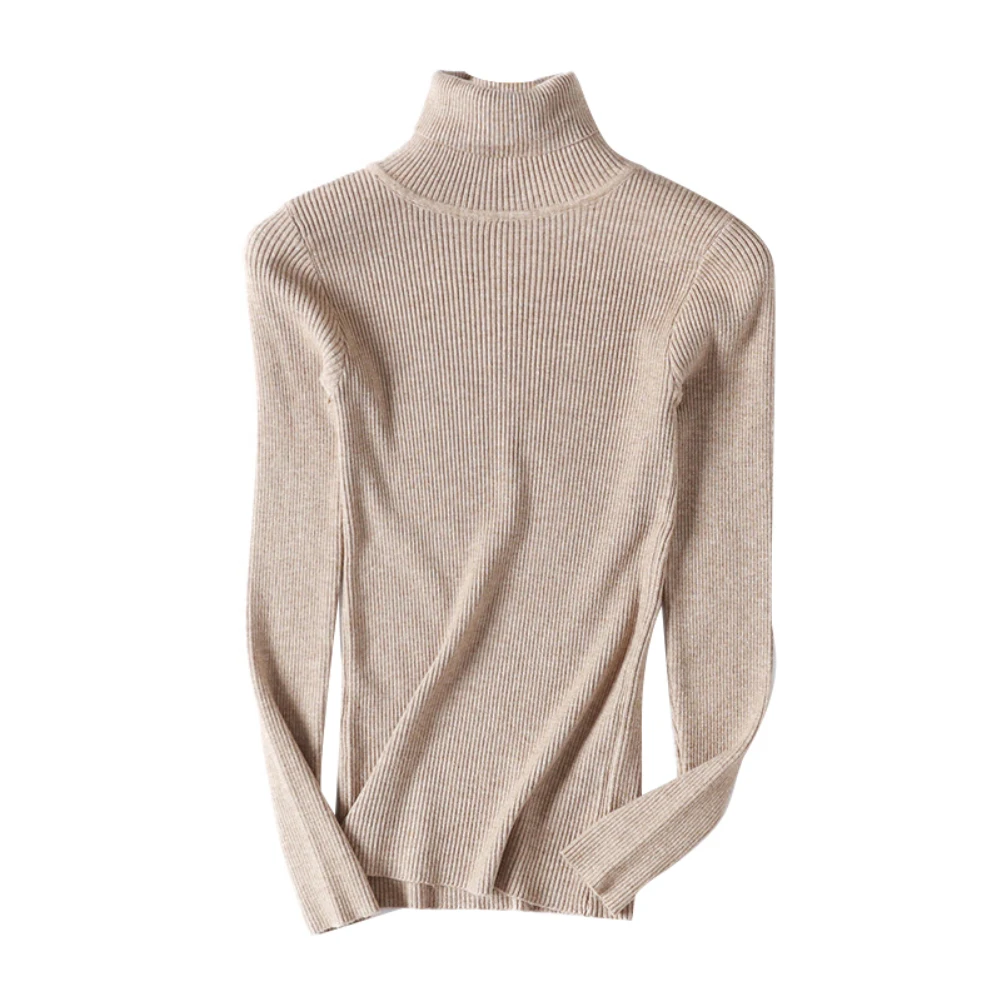 Свитер женский осенне-зимний, эластичный, с высоким воротом