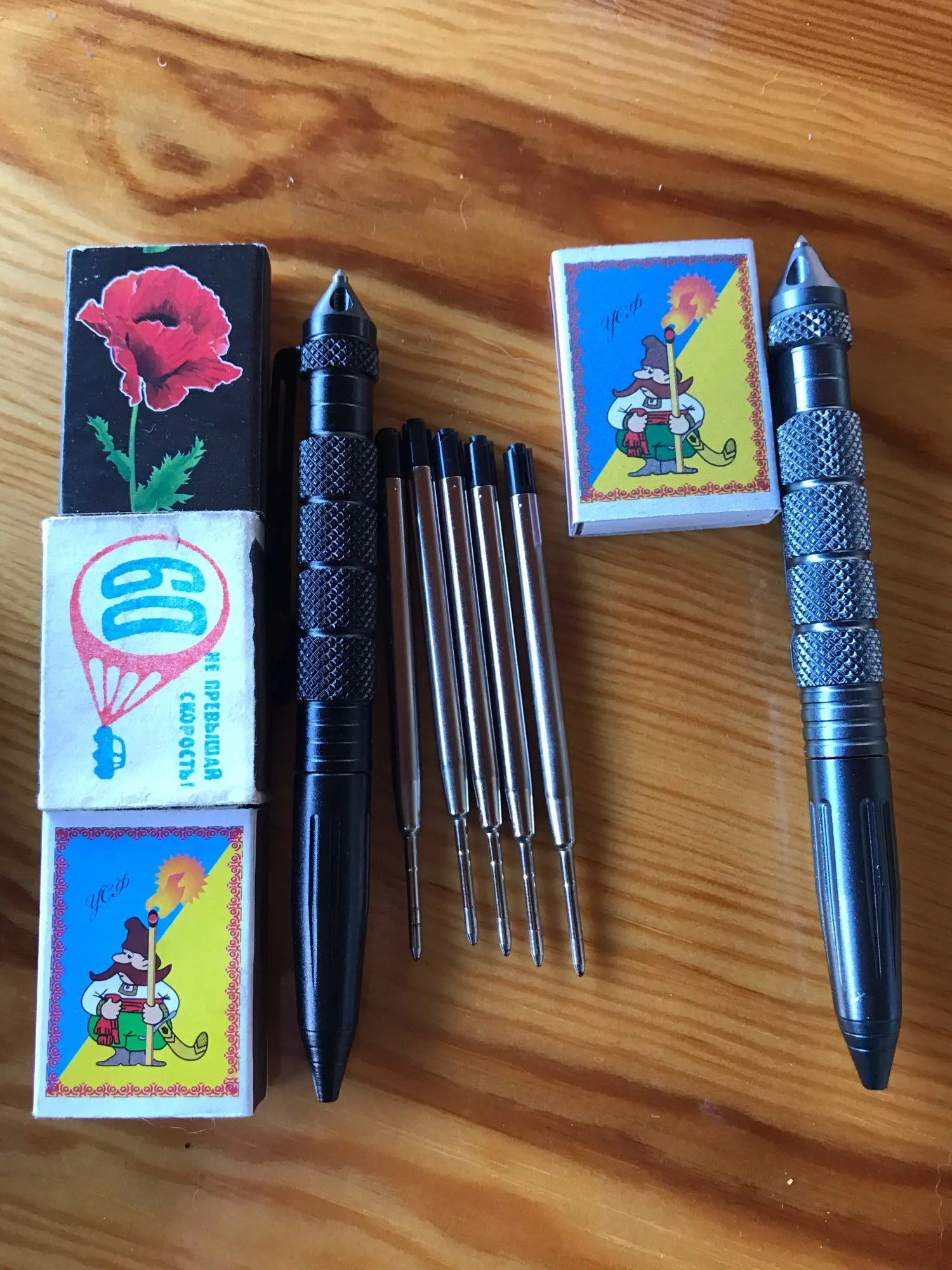 Ручки в Киев были доставлены где-то недели за три. Точно соответствуют описанию. Ручкипишут мягко, приятно. Стержни пишут тоже. Тактические возможности и стеклобой не проверял, но похоже на то, что функционально). Ручки ложатся в руку хорошо, писать приятно. Покупкой доволен. С продавцом не общался, не было необходимости.