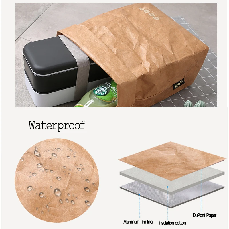 Складной многоразовый Герметичный пищевой контейнер, большая емкость, сумка для обеда, водонепроницаемая термоизоляция, Крафтовая бумага, алюминиевая фольга