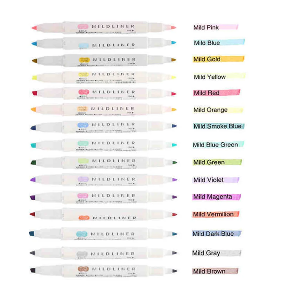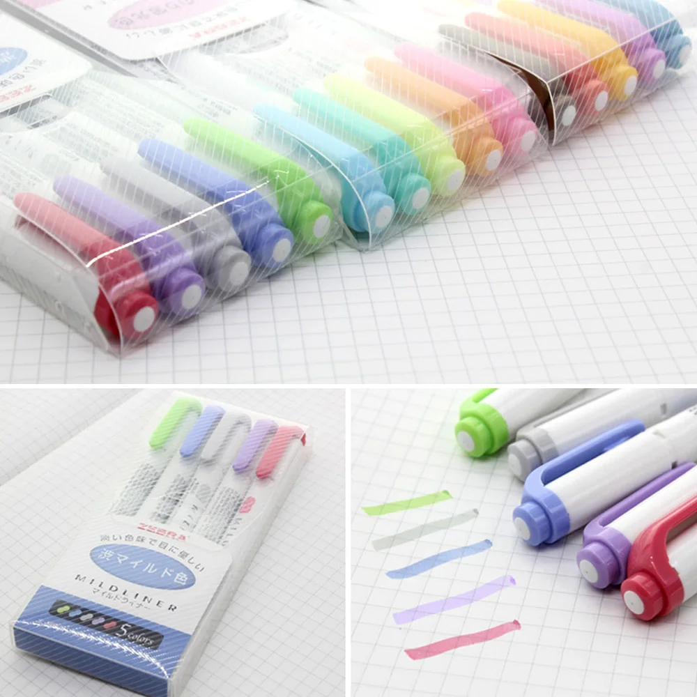 Набор маркеров Mildliner, 5 шт., двусторонние, японские Канцтовары,...