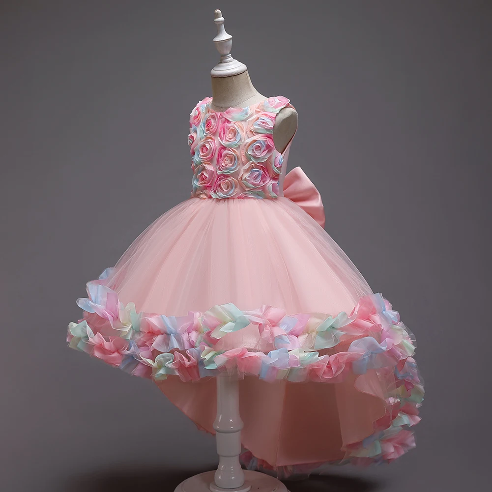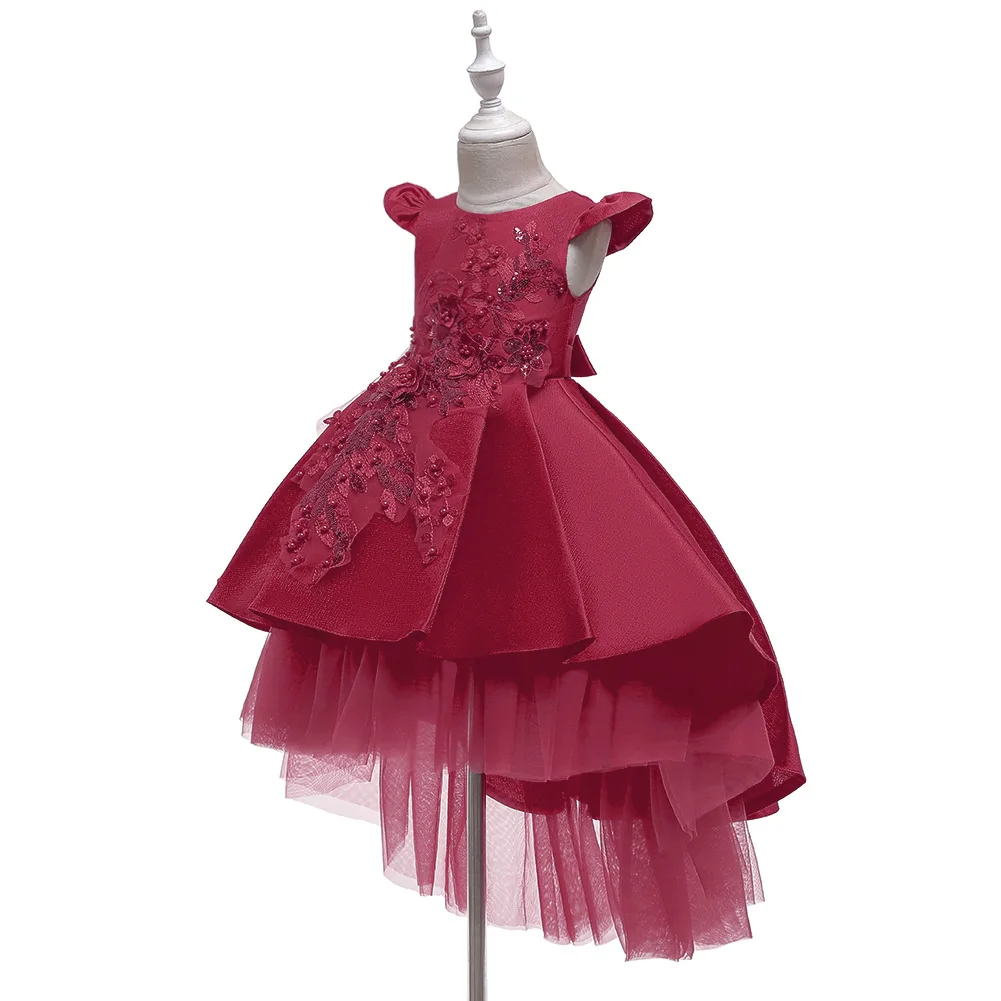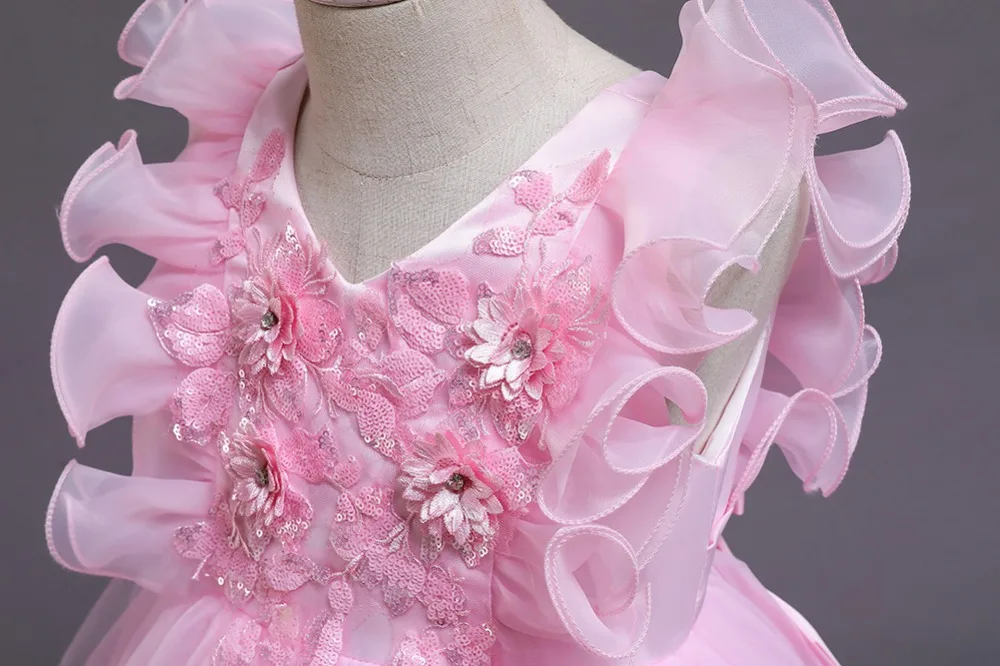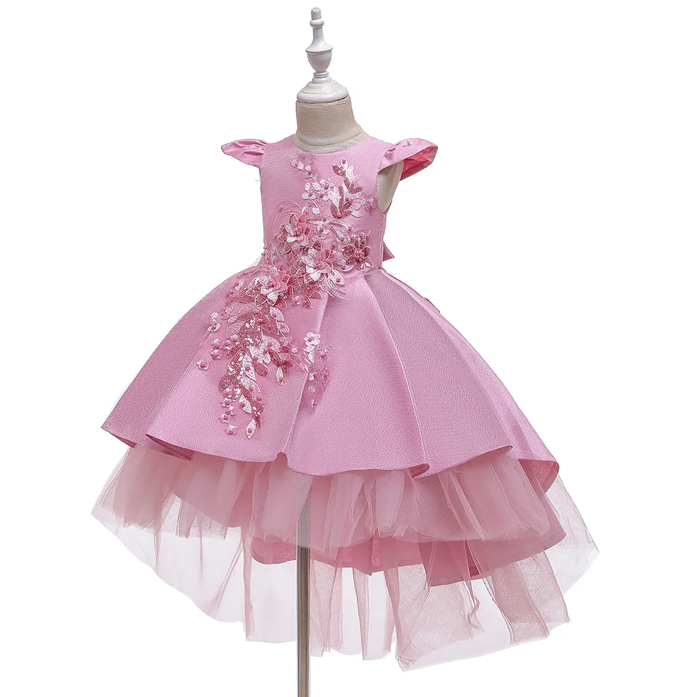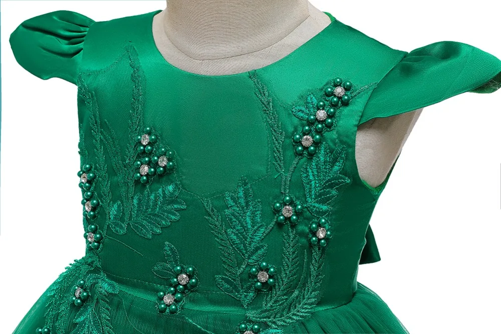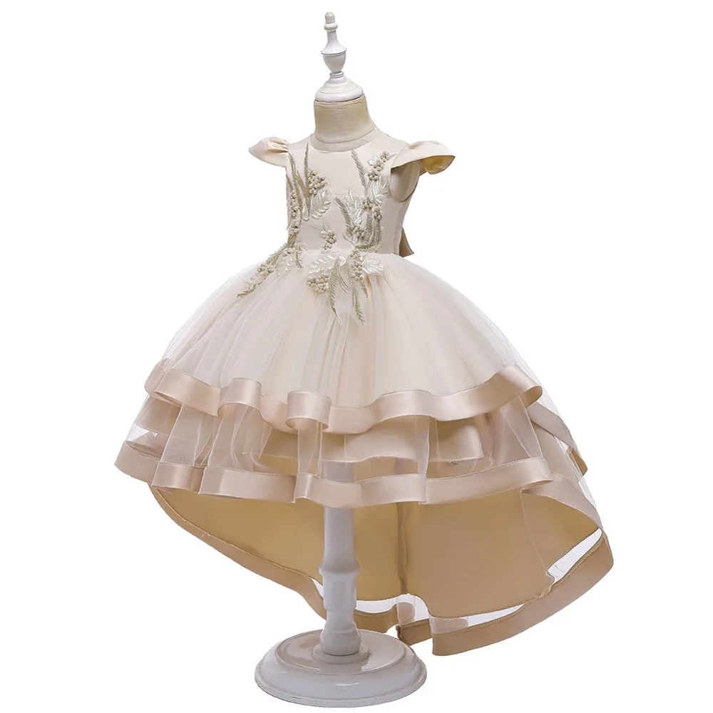 Вышивка жемчугом, вечерний стиль. Платье принцессы с длинным шлейфом для девочек. 100% Хлопковая Подкладка. Сверьтесь с таблицей размеров перед оформлением заказа.
