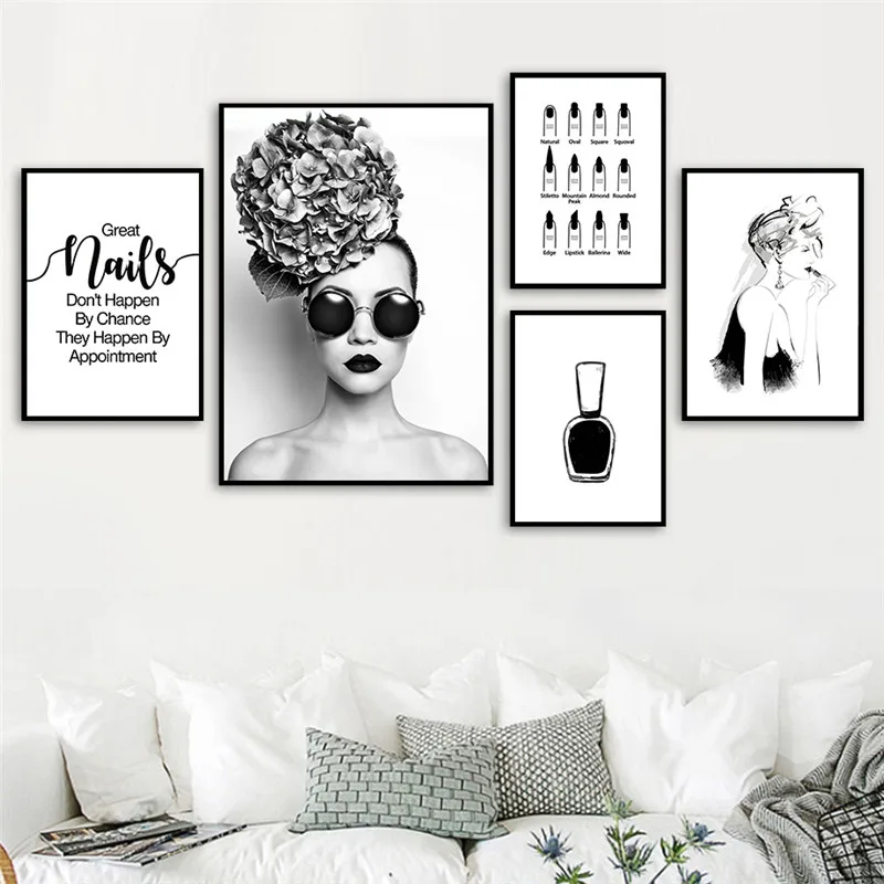 Современная мода кисть для ногтей Художественная Картина на холсте плакат черно-белый художественный настенный принт привлекательная красивая картина макияж Настенный декор YX146