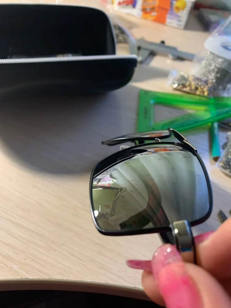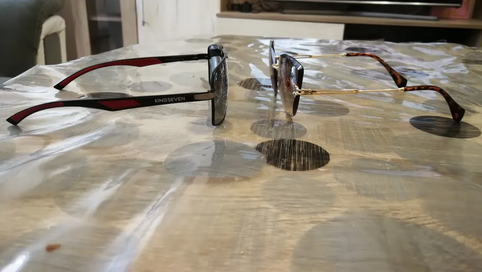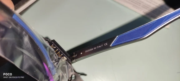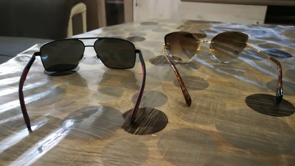 Одна линза кривая. Изображение в очках немного зеленое. Надпись бренда весьма сильно мешает. Душки металлические и в месте касания к линзе нету резиновых вставок никаких, линза быстро поцарапается.
