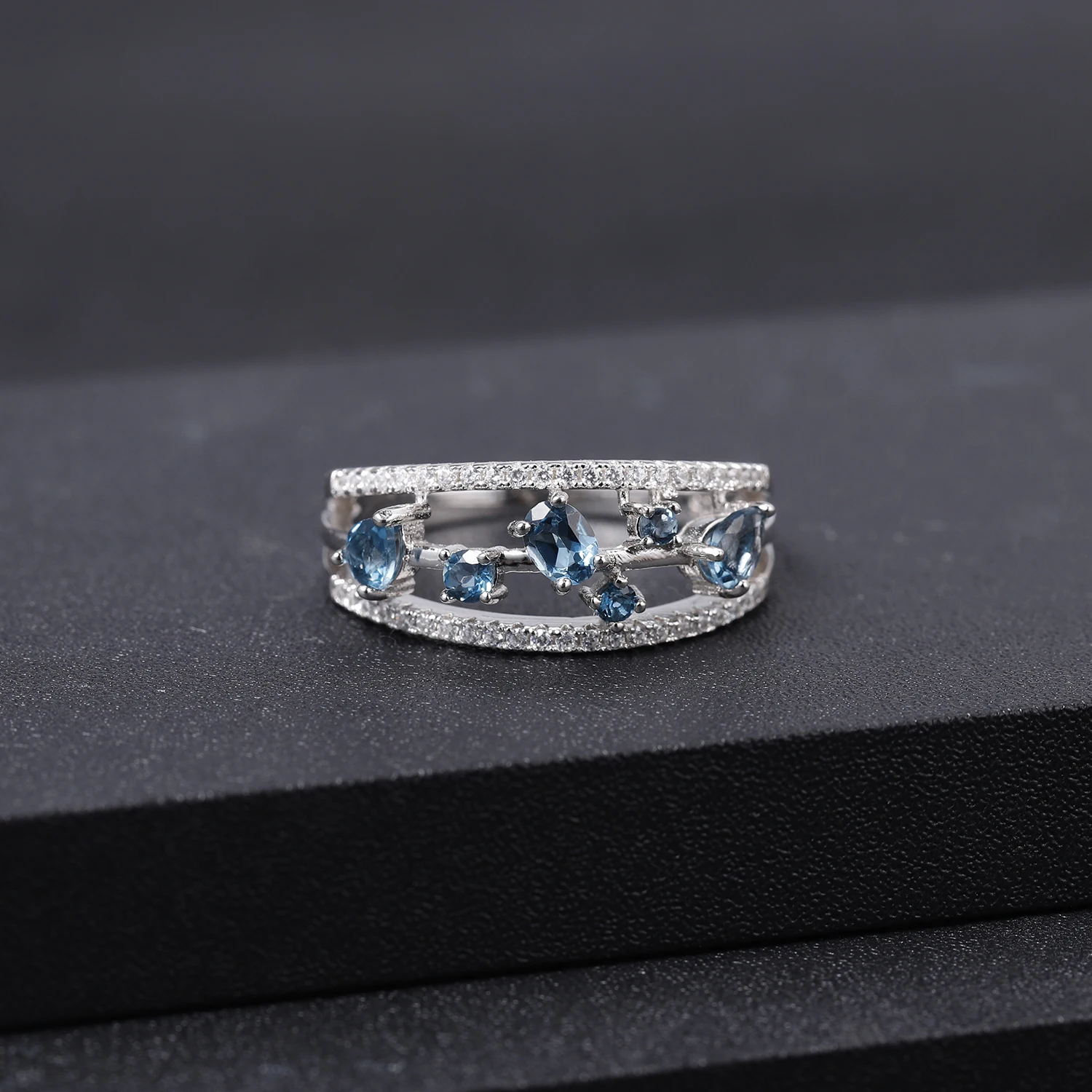 Кольцо женское из серебра 925 пробы, с натуральным лондонским голубым топазом 0,65 карата