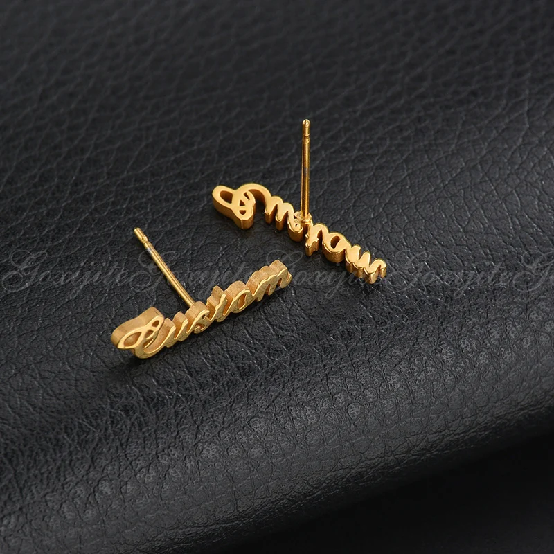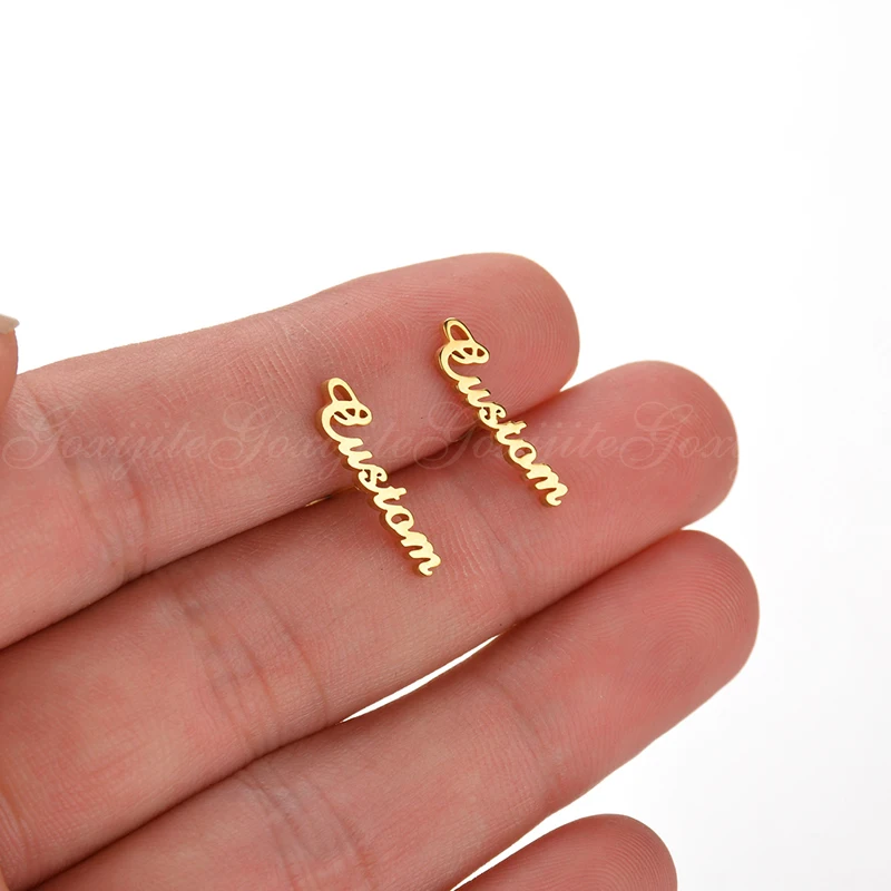 Goxijite персонализированные именные серьги для женщин из нержавеющей стали под заказ золотые серьги-гвоздики с именем и шрифт подарочные украшения для друзей