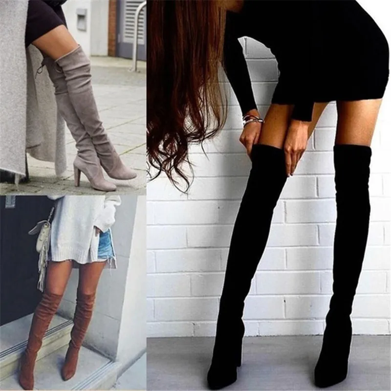 New European And American Pointed Thick Heel Zipper Over The Knee Boot