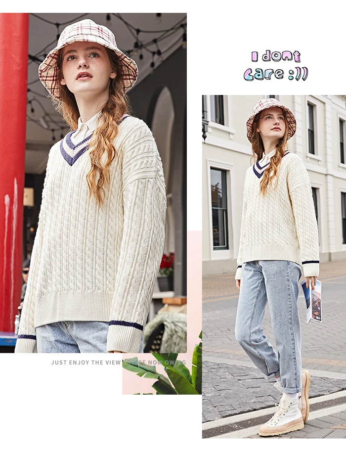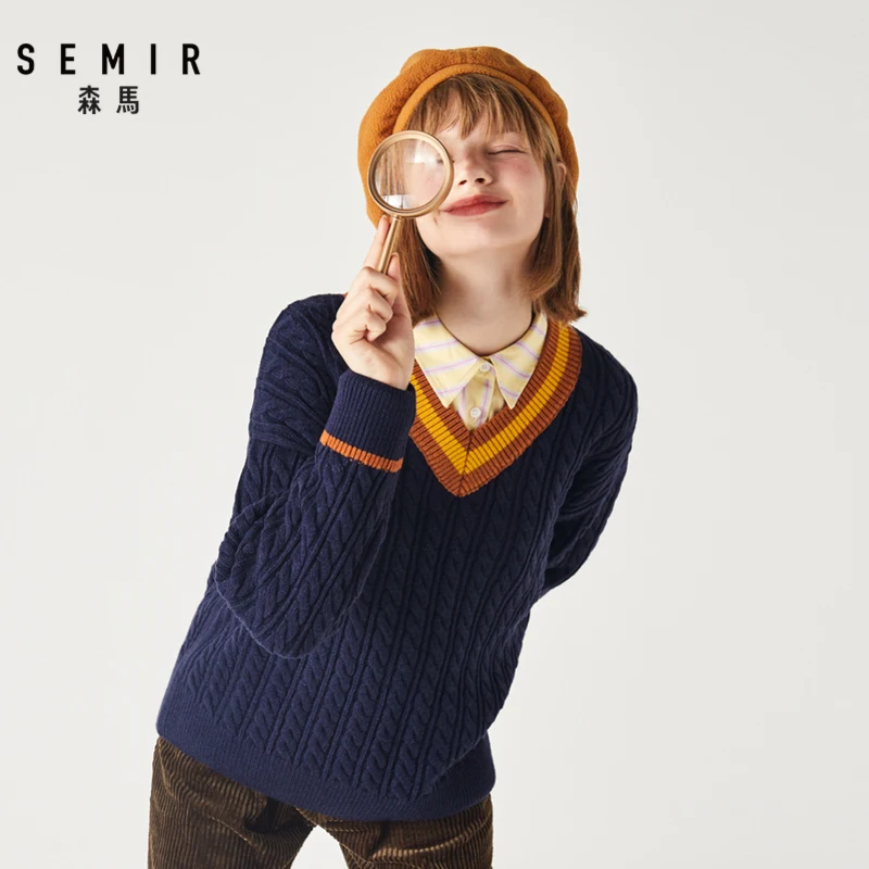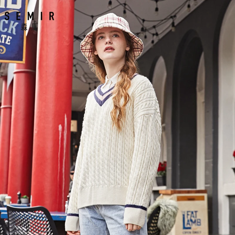 Свитер SEMIR женский тонкий свободного кроя, мягкий пуловер с V-образным вырезом в стиле колледжа, в стиле кантри, зима 2019