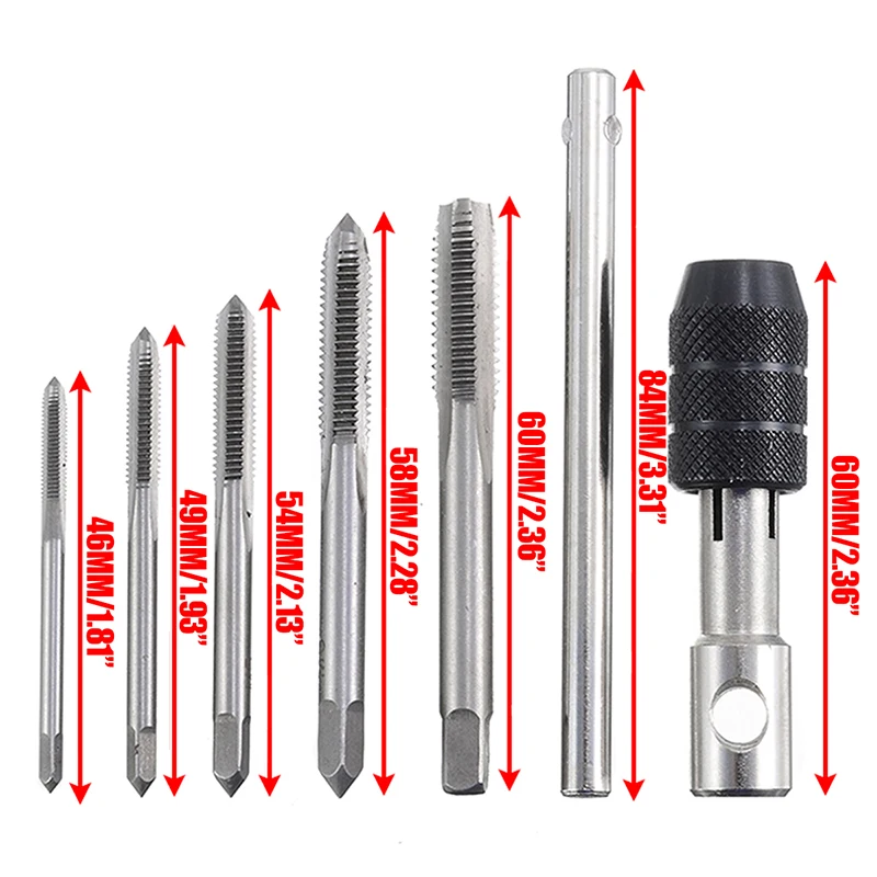 Размер кранов: M3 * 1 мм, M4 * 1 мм, M5 * 1 мм, M6 * 1 мм, M8 * 1,25 мм