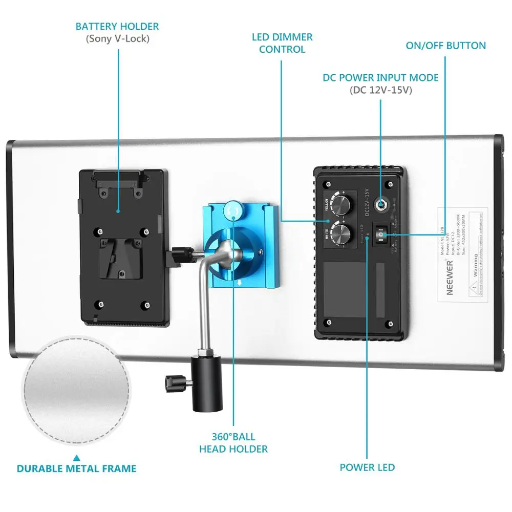 Светодиодный светильник Neewer с регулируемой яркостью, светильник для фотосъемки, светодиодный светильник с металлической рамкой, 1320 светодиодов, 3200-5600K, адаптер постоянного тока, параметры заряда батареи для студийной портретной видеосъемки (аккумулятор не входит в комплект)