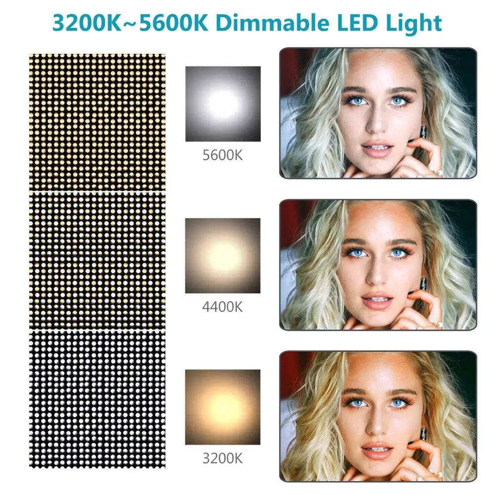Особенности с отдельной ручкой цветовой температуры и ручкой регулировки яркости, можно регулировать цветовую температуру от 3200 к до 5600 к и яркость от 1% до 100%.