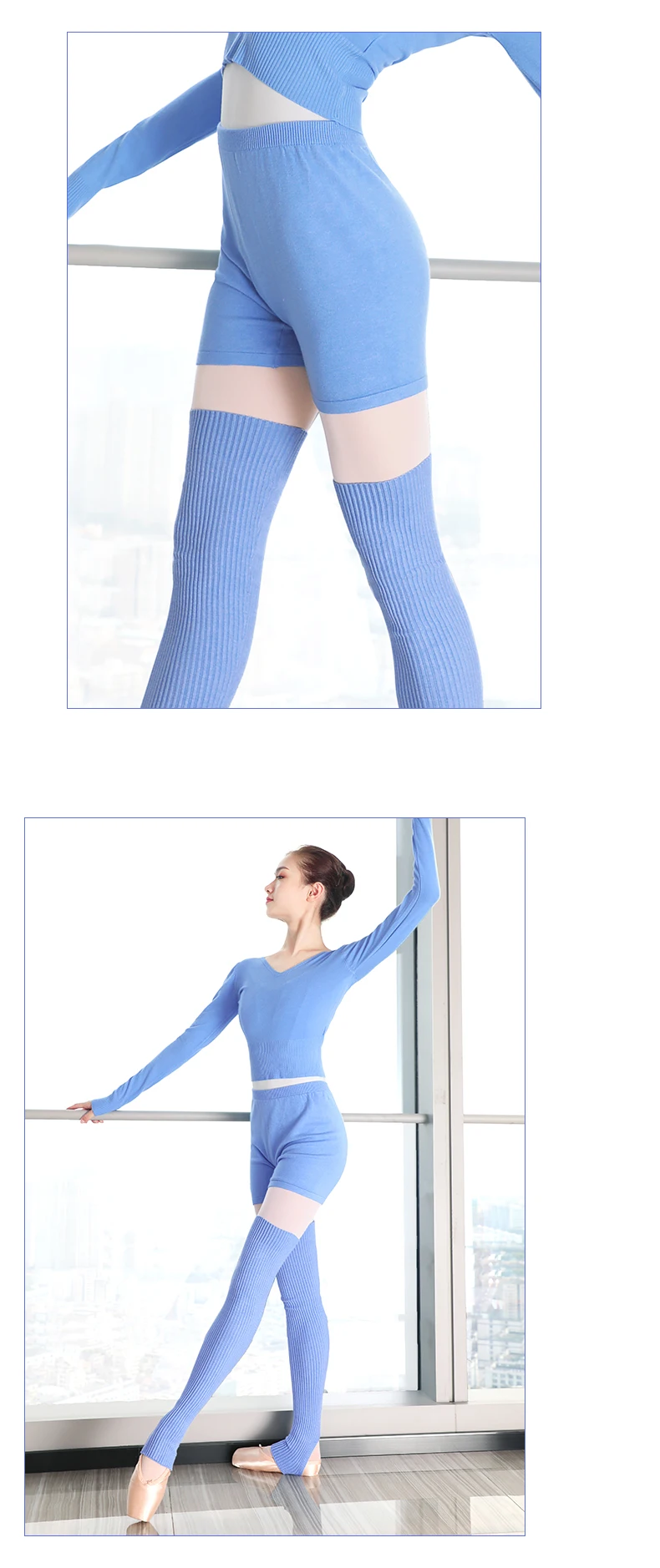 Новый стиль, Женский балетный танцевальный костюм из 2 предметов, свитер и шорты, Осень-зима, теплый вязаный танцевальный костюм для взрослых, балетные костюмы