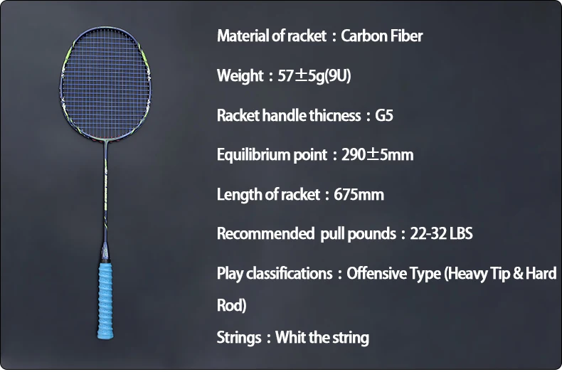 Вес-9U вес нетто всего 57-62 г без веревки и накладки и пластиковой пленки, любой может контролировать ракетку без усилий;