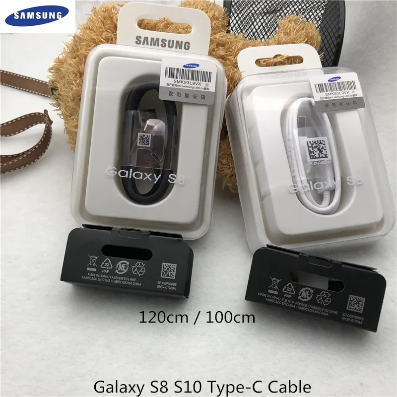 100% оригинальный Samsung 120 см 100 см USB Type C кабель для быстрой зарядки и передачи данных для Samsung Galaxy S8 S9 Plus S10 A50 A80 A9 A9S C7 Pro