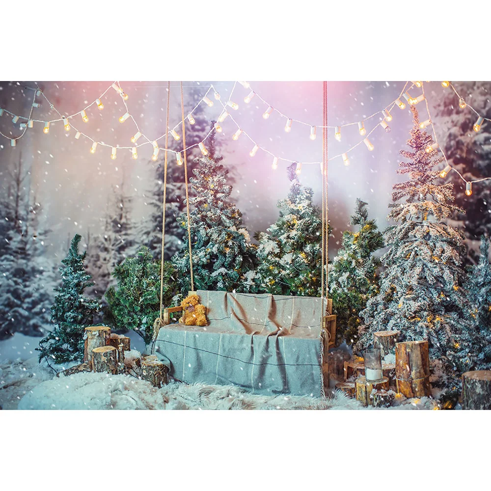Рождественский фон для фотосъемки Снег Рождественские елки зимний п...