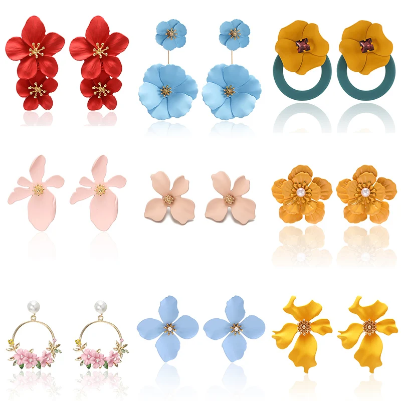 Оптовая продажа, модные женские серьги 2019, корейские серьги с цветами, Винтажные серьги-гвоздики, цветные модные ювелирные изделия в стиле бохо для вечеринок
