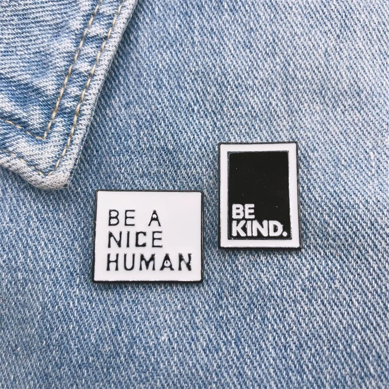Брошь из металлического сплава, с геометрическими квадратами, черно-белыми буквами и эмалью