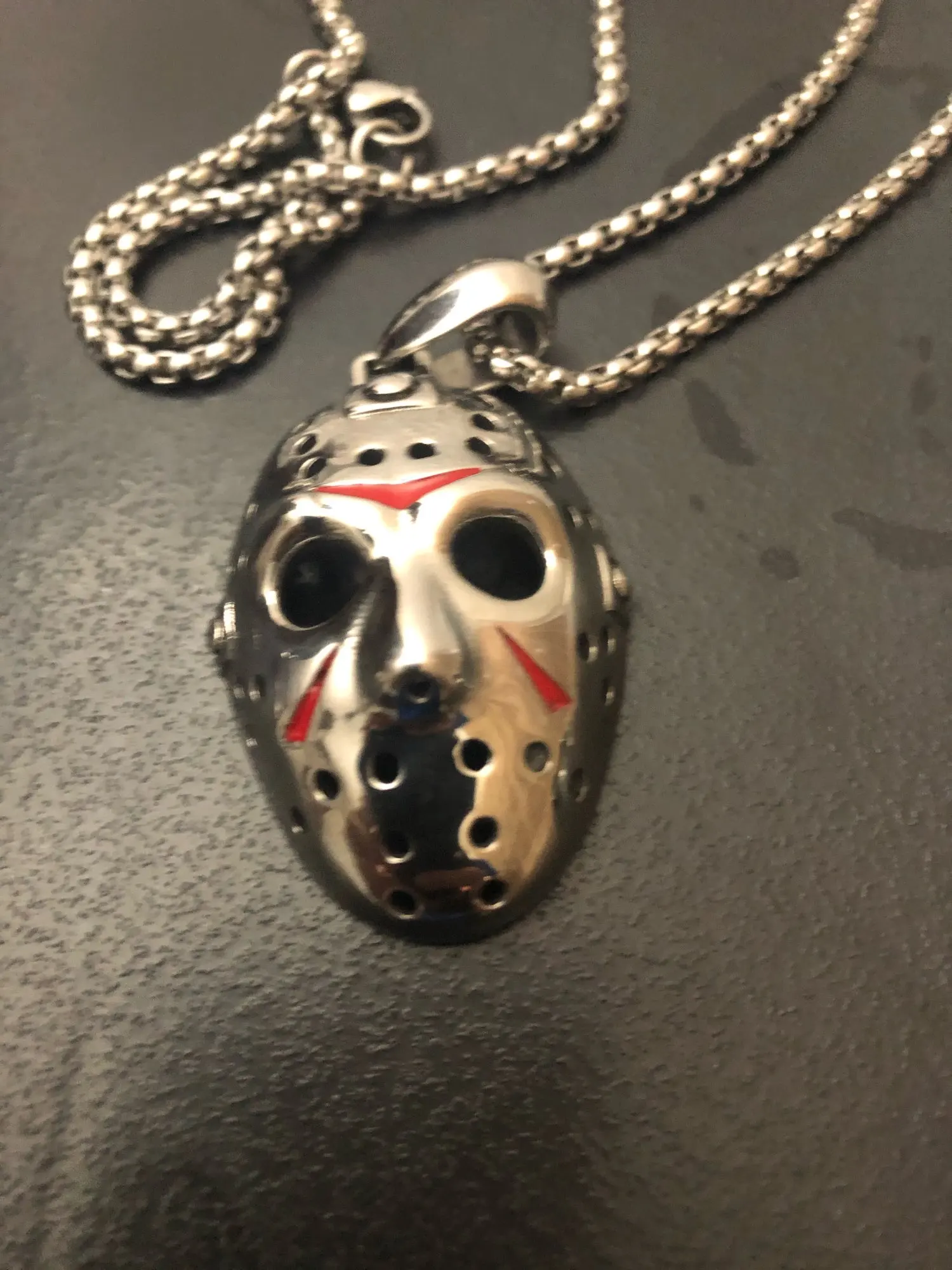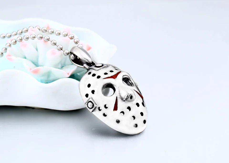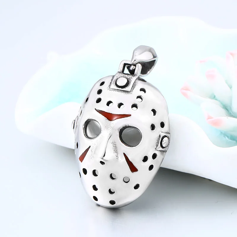 Байер нержавеющая сталь байкер Джейсон Хоккей Подвеска для Хэллоуина ожерелье с красным цветом под старину Прохладный ювелирные изделия BP8-362