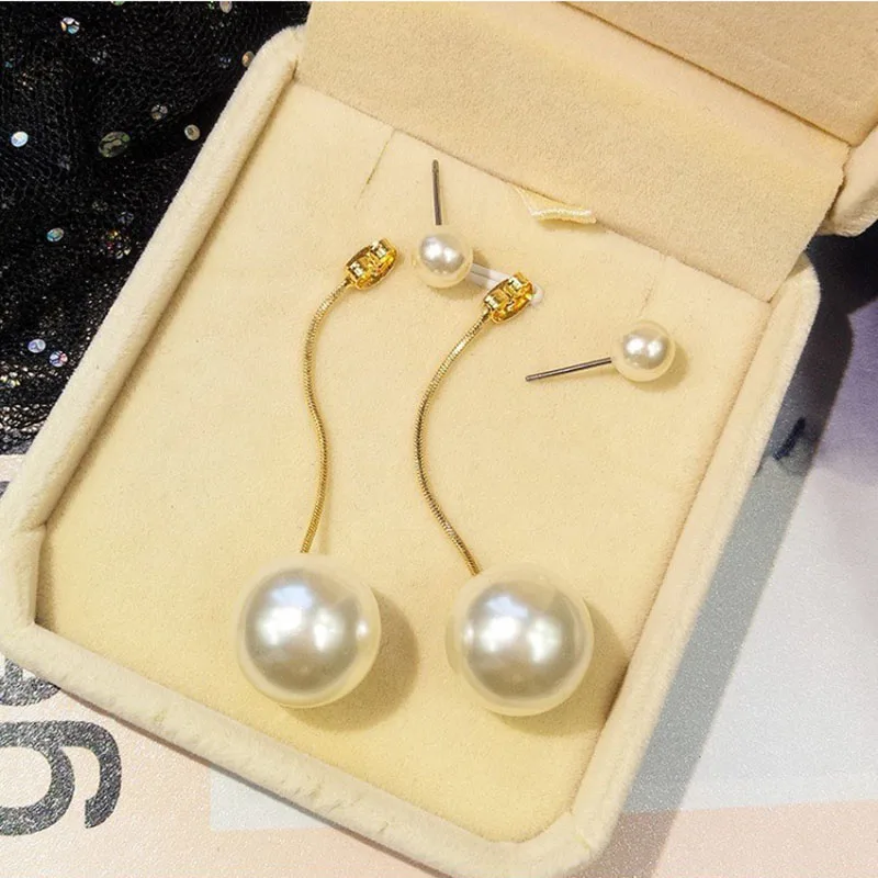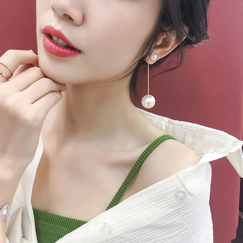 Корейские Индивидуальные Крупные Висячие серьги-гвоздики с имитацией жемчуга, Элегантные Изысканные Серьги-подвески для предотвращения аллергии