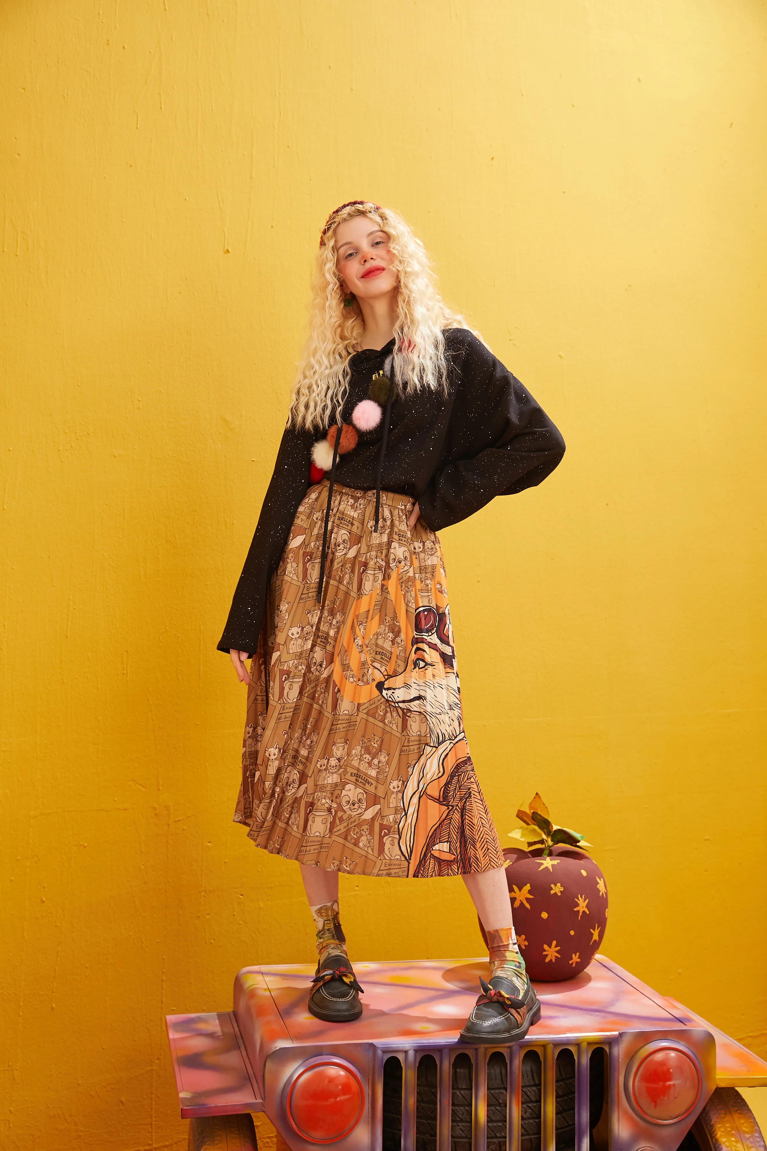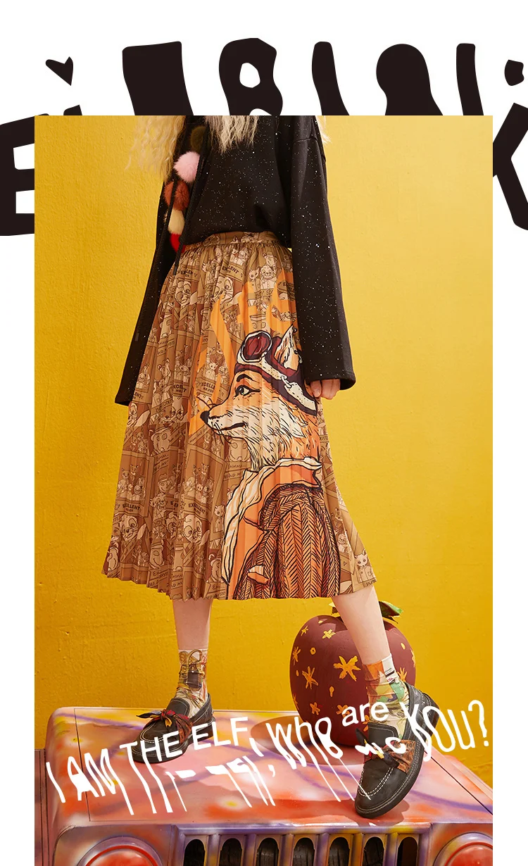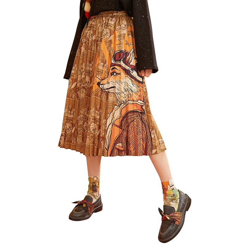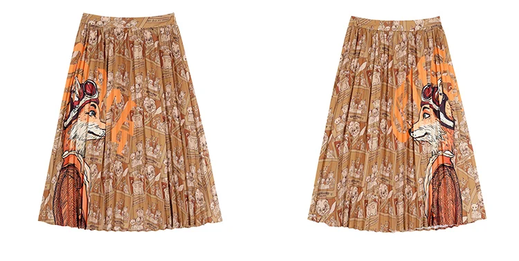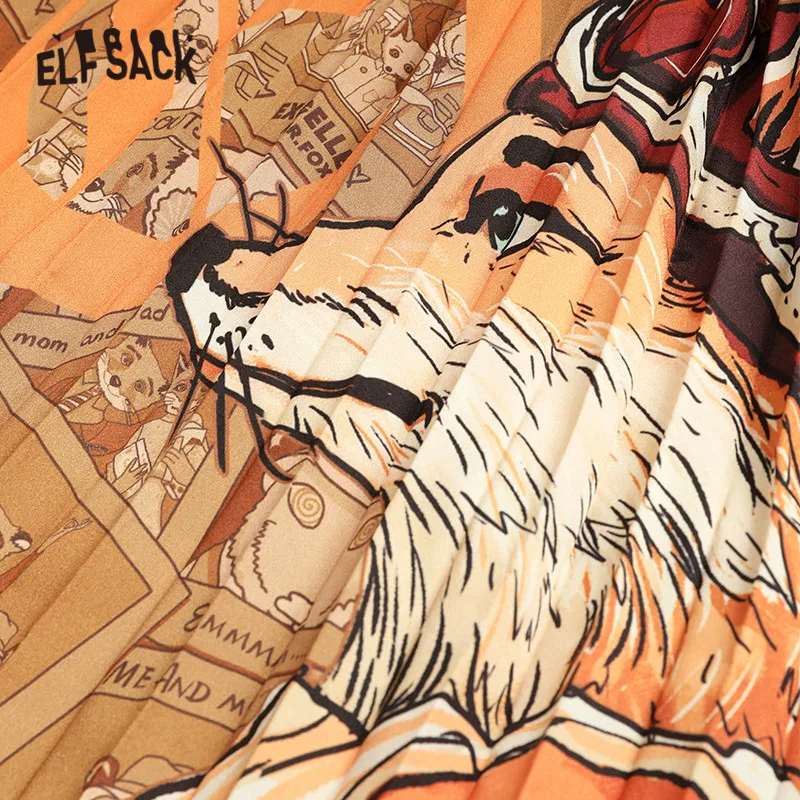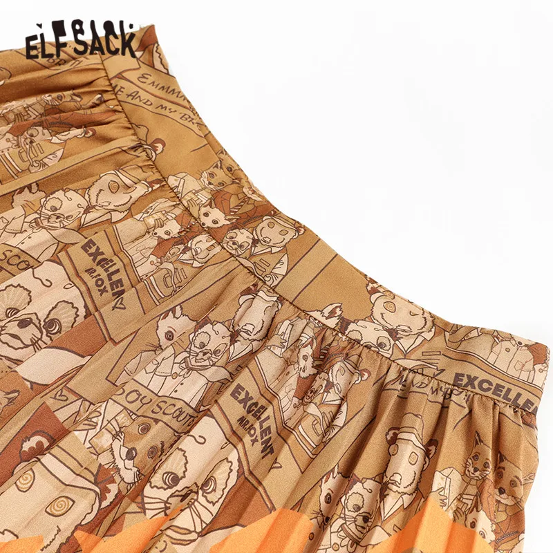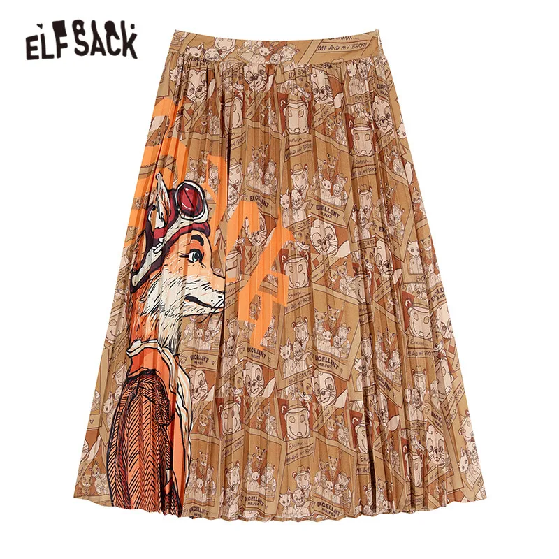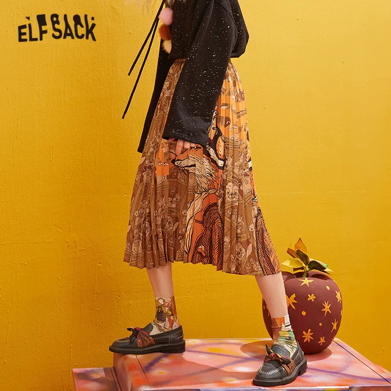 Женская плиссированная юбка ELFSACK, длинная облегающая офисная юбка трапециевидной формы с высокой талией и принтом лисы, зима 2019