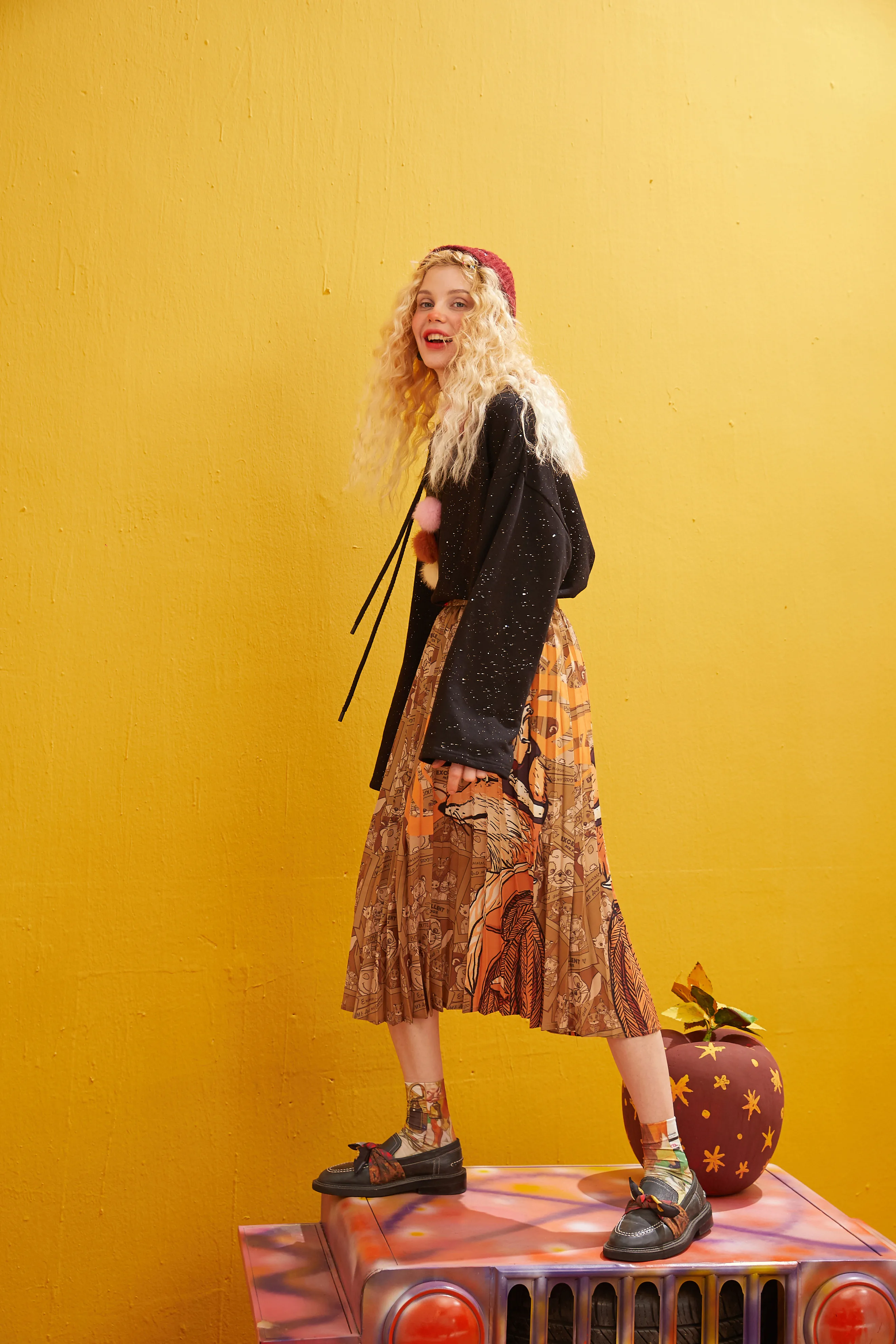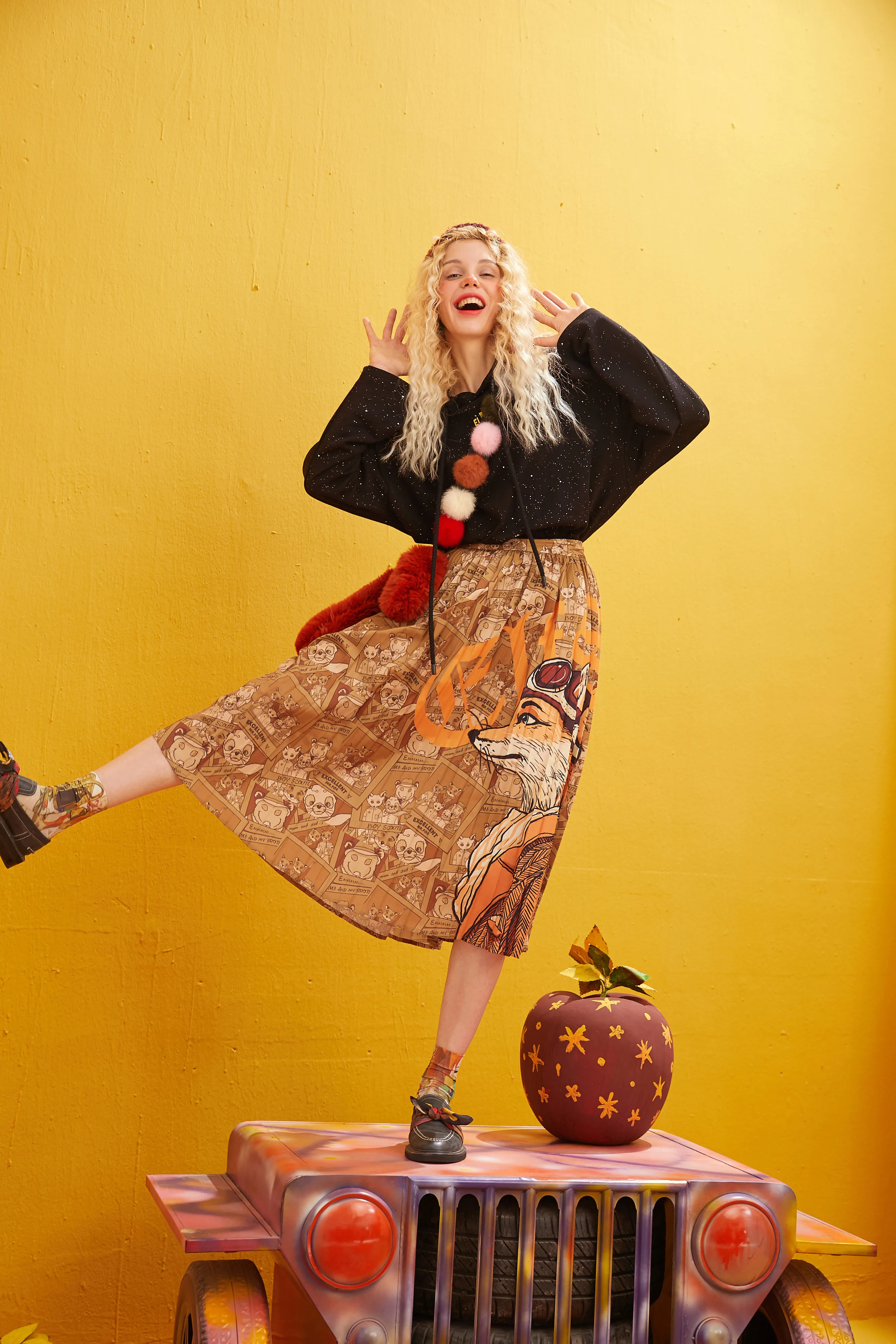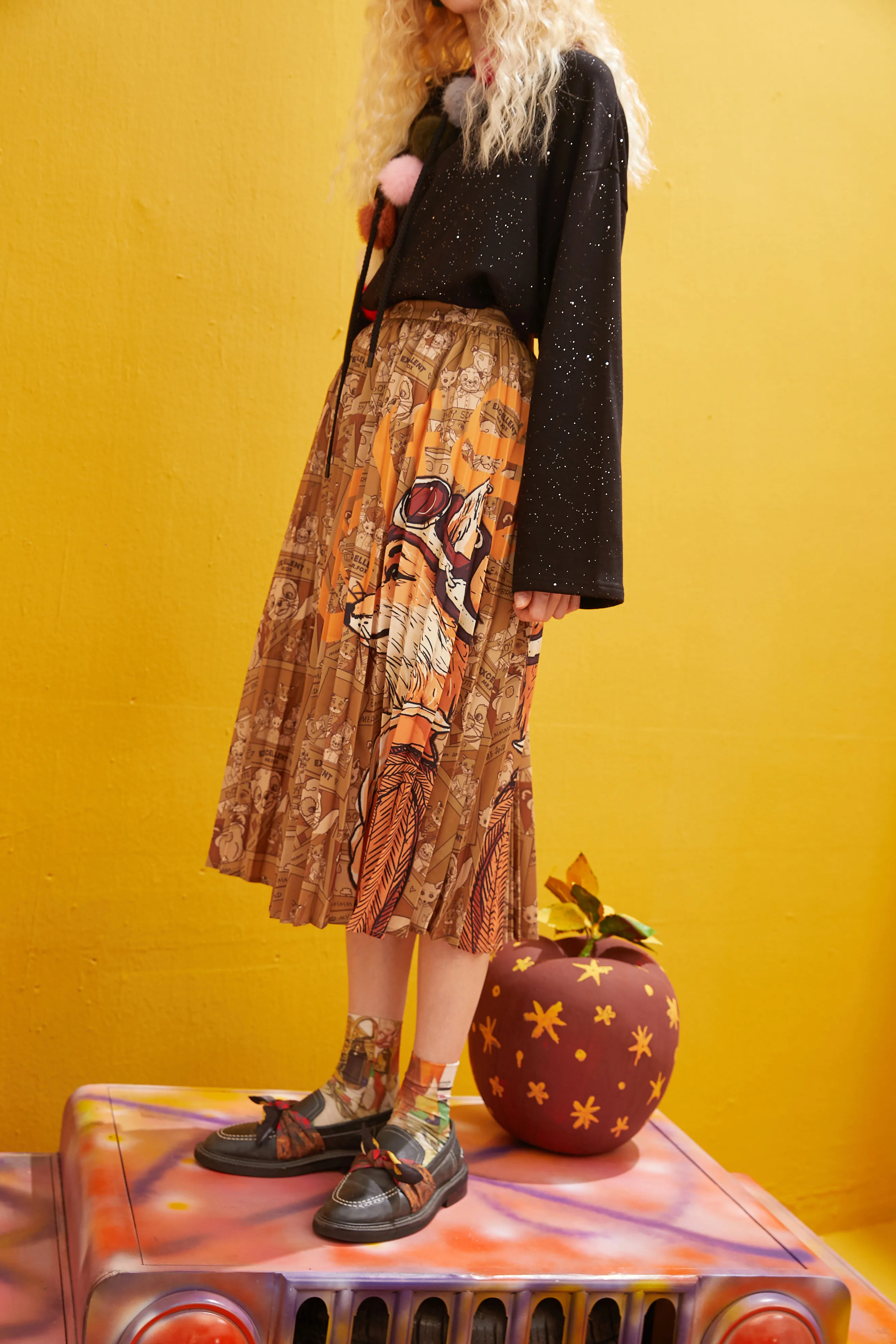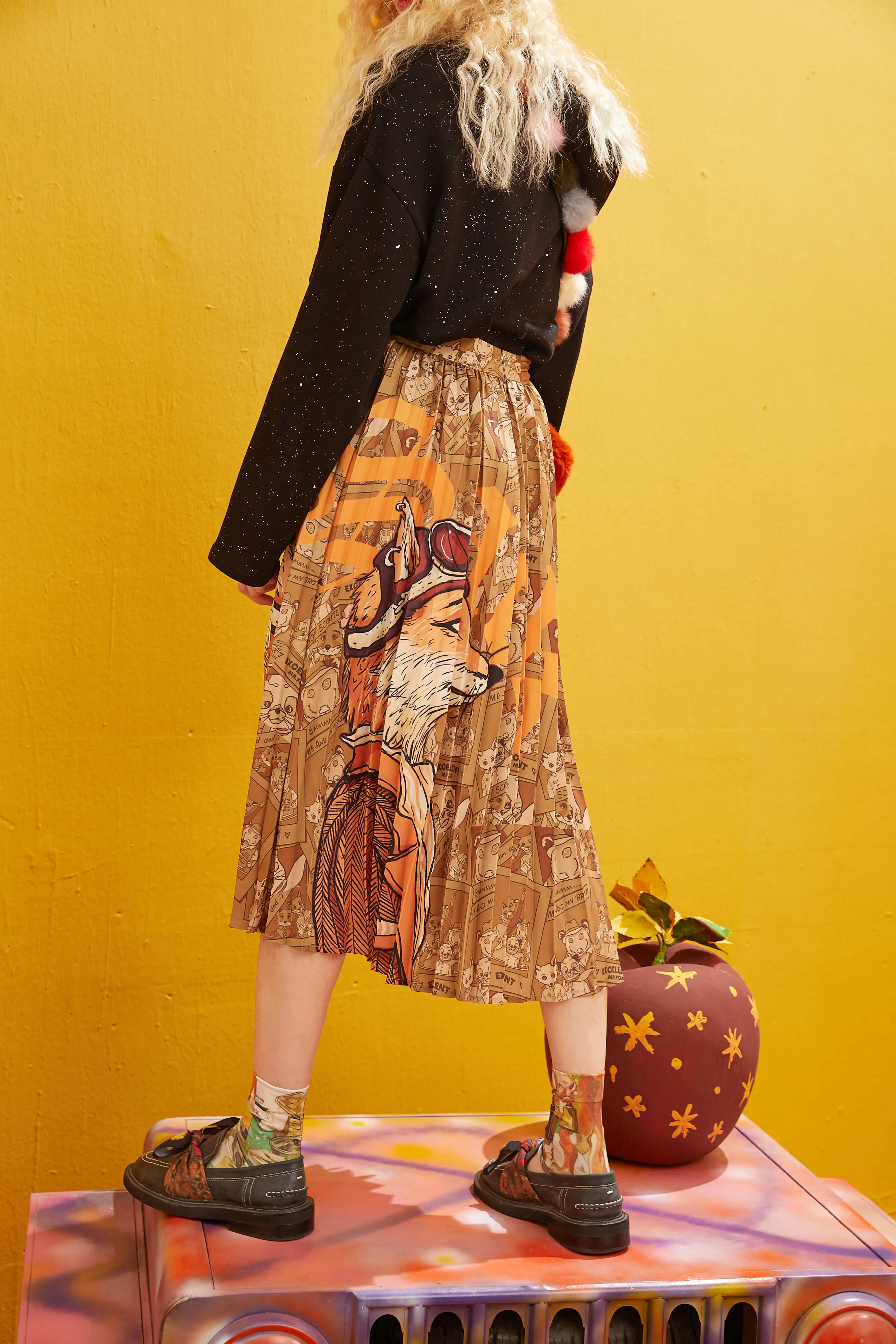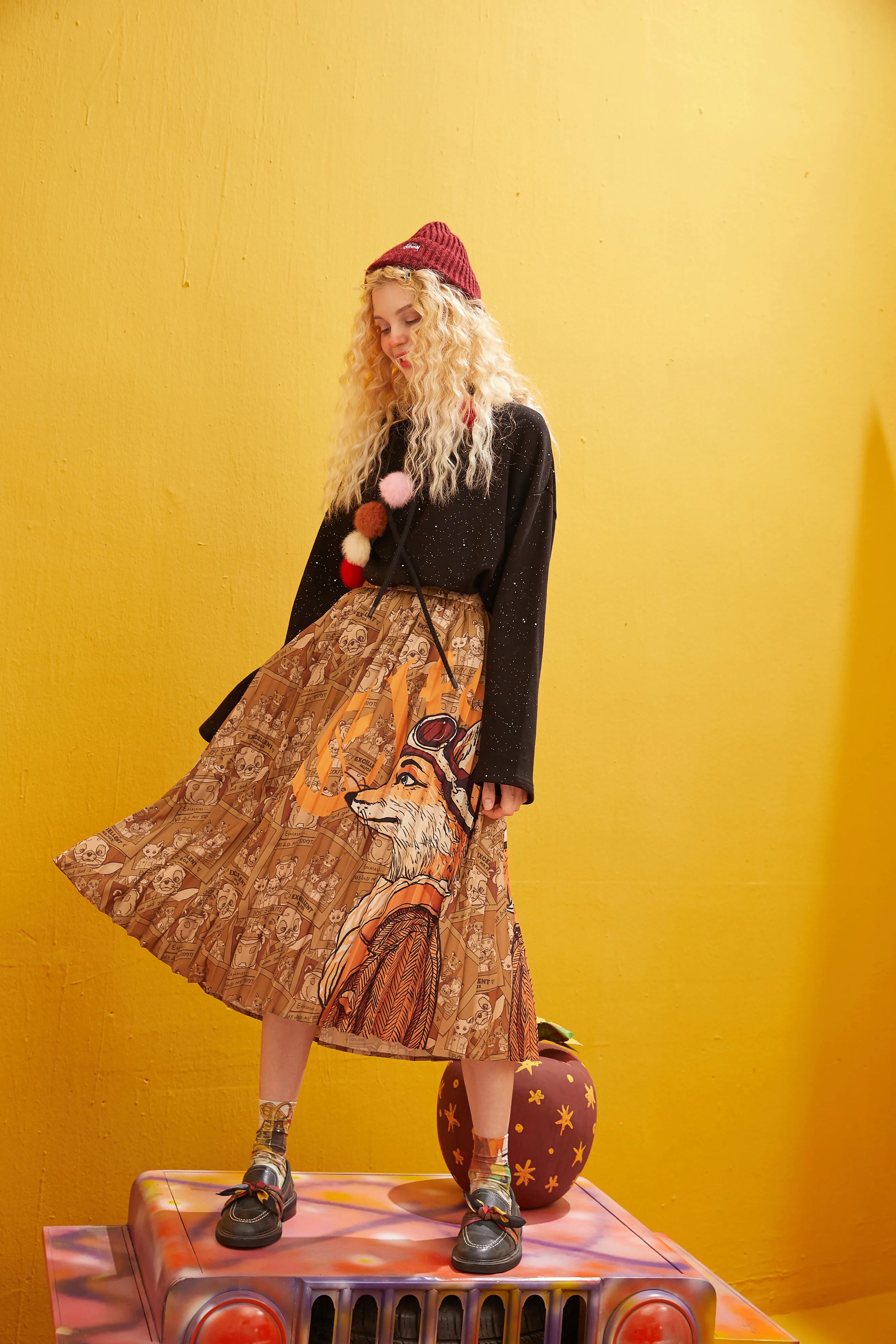 Женская плиссированная юбка ELFSACK, длинная облегающая офисная юбка трапециевидной формы с высокой талией и принтом лисы, зима 2019