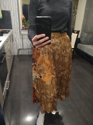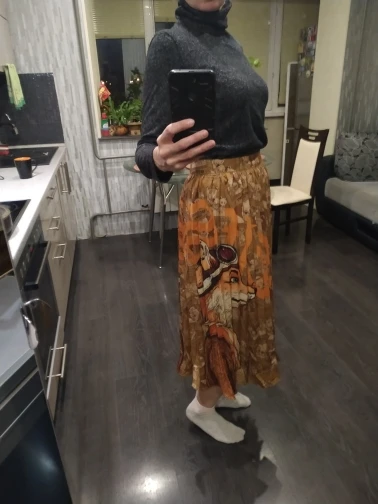 Мне нравится, слишком длинный для меня рост, принт и юбка хорошего качества, доставка была очень быстрой