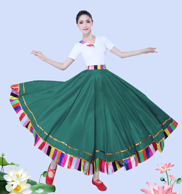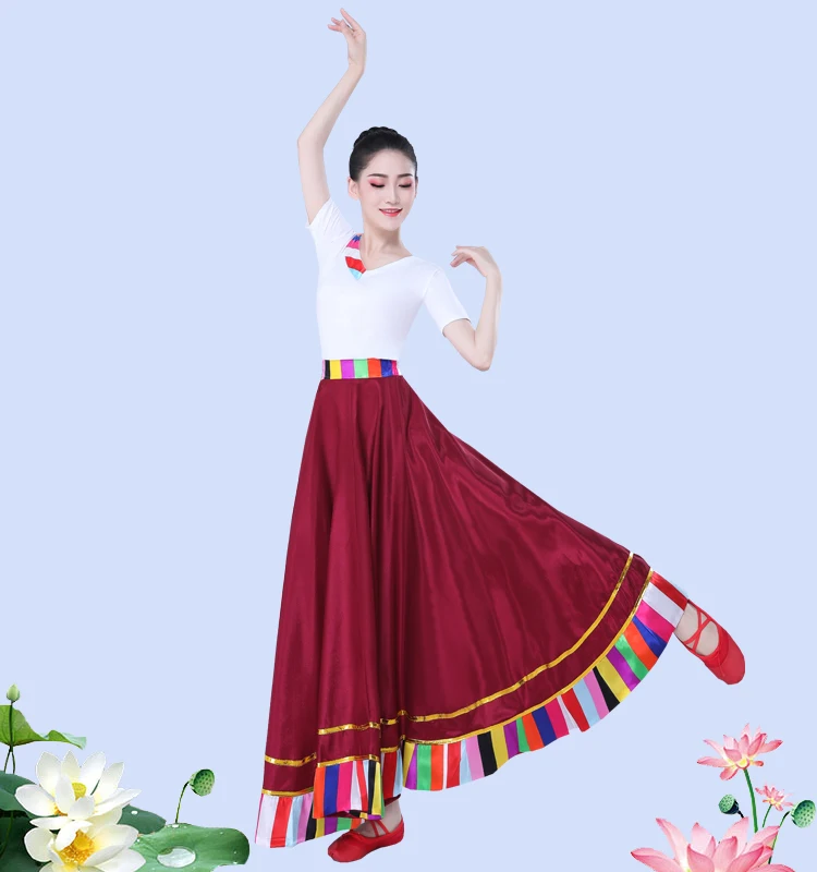 Тибетская полуюбка, тибетское этническое квадратное платье для танцевальных представлений, женское платье для тренировок, большая юбка для тренировок в тибетском стиле