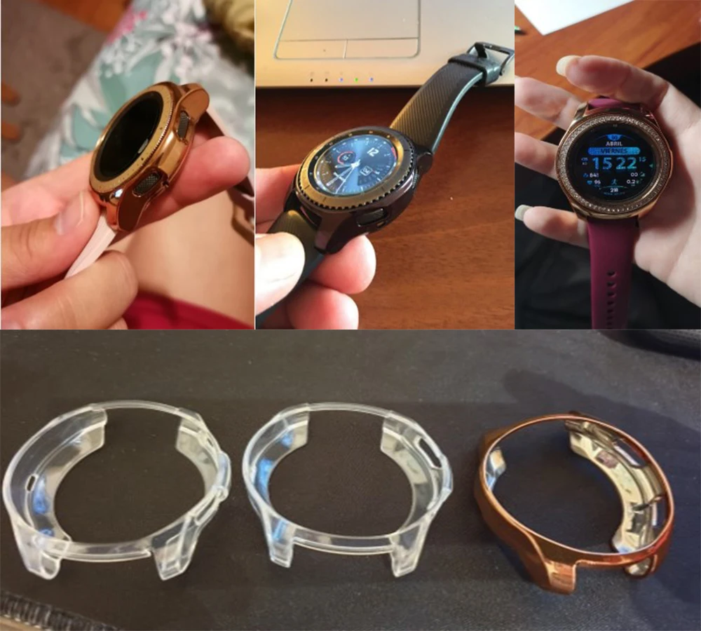 Подходит к часам Galaxy Watch, слегка уменьшает Приклеивание к боковым кнопкам, но значительно уменьшает использование ободка, так как вы не можете поместить между пальцами bazel. Bazel можно вращать только одним пальцем, когда непосредственно указываете на часы. Хорошо подходит для одежды, используется на серебристых часах и практически не виден. Доставка до CZ 30 дней