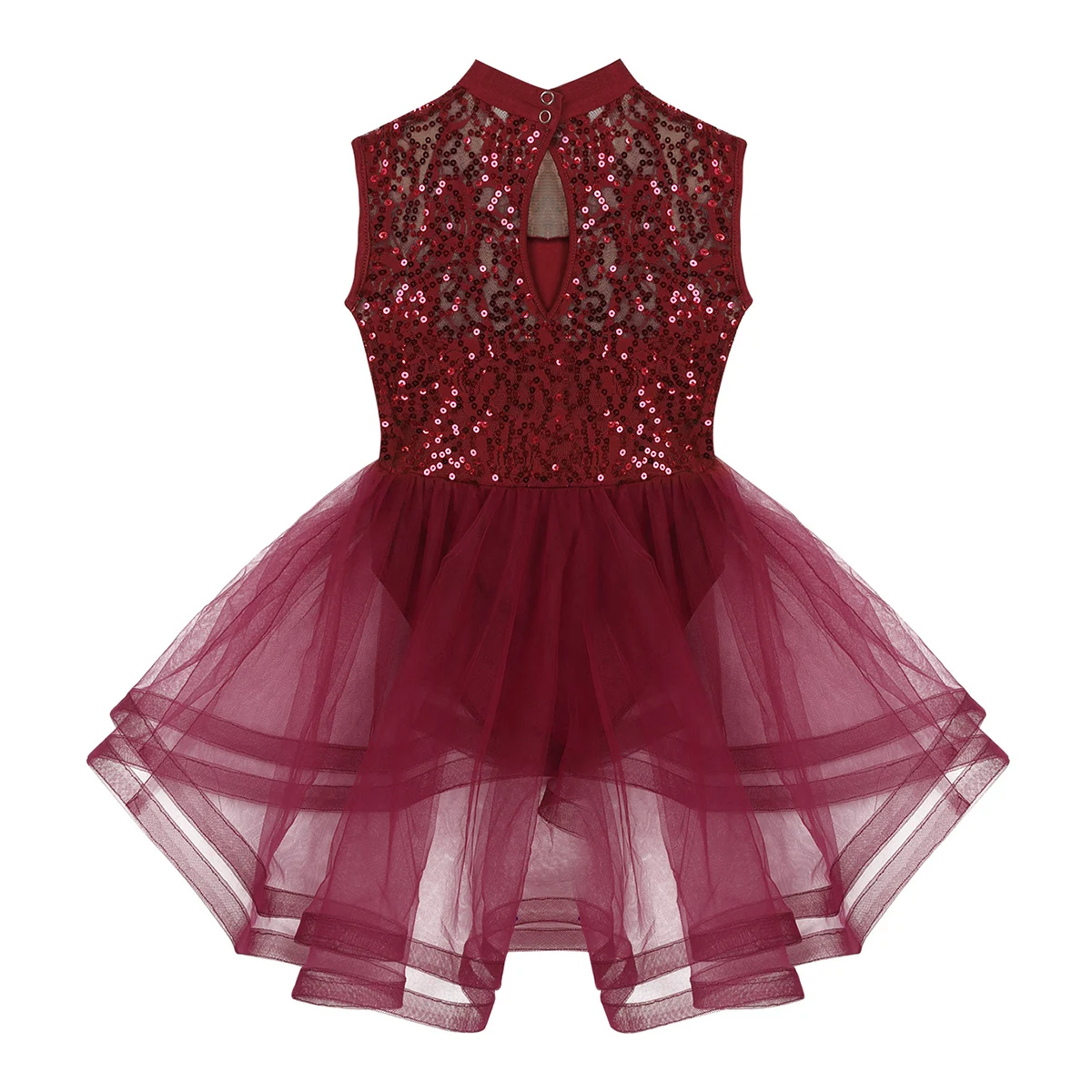 Детское Сетчатое платье-пачка с блестками для балета, фигурного катания, гимнастического трико для девочек-подростков, танцевальные костюмы для выступлений и соревнований