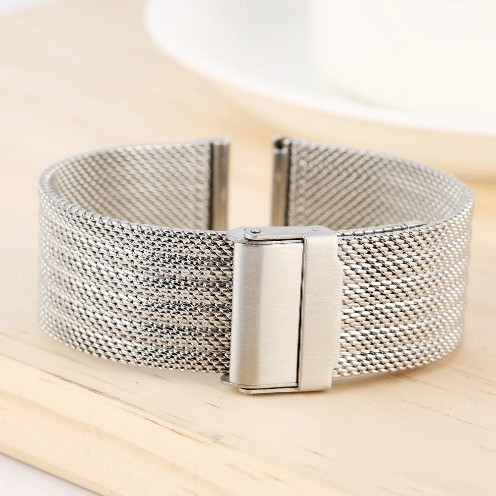 Ремешок сменный для часов, серебристый сетчатый Браслет из нержавеющей стали с застежкой-крючком, 18 мм 20 мм 22 мм 24 мм