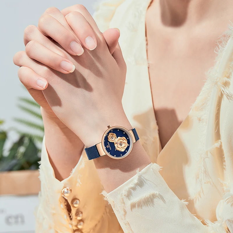 NAVIFORCE, женские часы, Лидирующий бренд, розовое золото, синий цвет, кварцевые женские часы, стальная сетка, водонепроницаемые наручные часы для девушек, Relogio Feminino