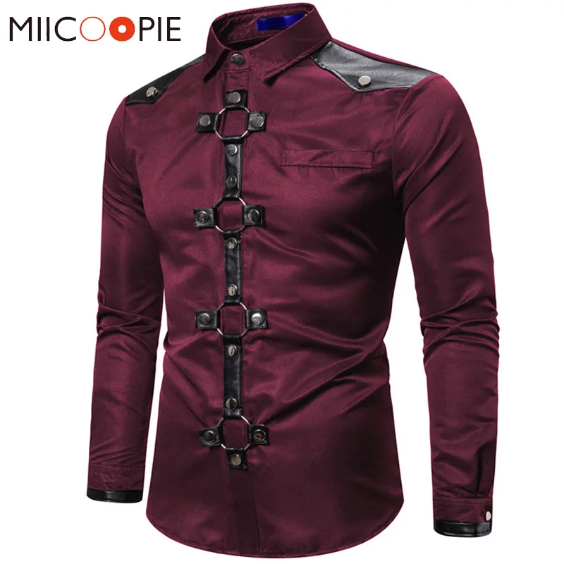 Рубашка-карго Мужская, с заклепками, однотонная, приталенная