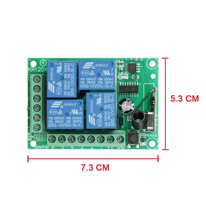 Нажмите одну кнопку один раз, соответствующий канал работает/включается; Нажмите другую кнопку-это стоп/выкл (в то же время работает другой соответствующий канал). (Для 4-канального переключателя (приемника) требуется пульт дистанционного управления с 4 кнопками (передатчик).