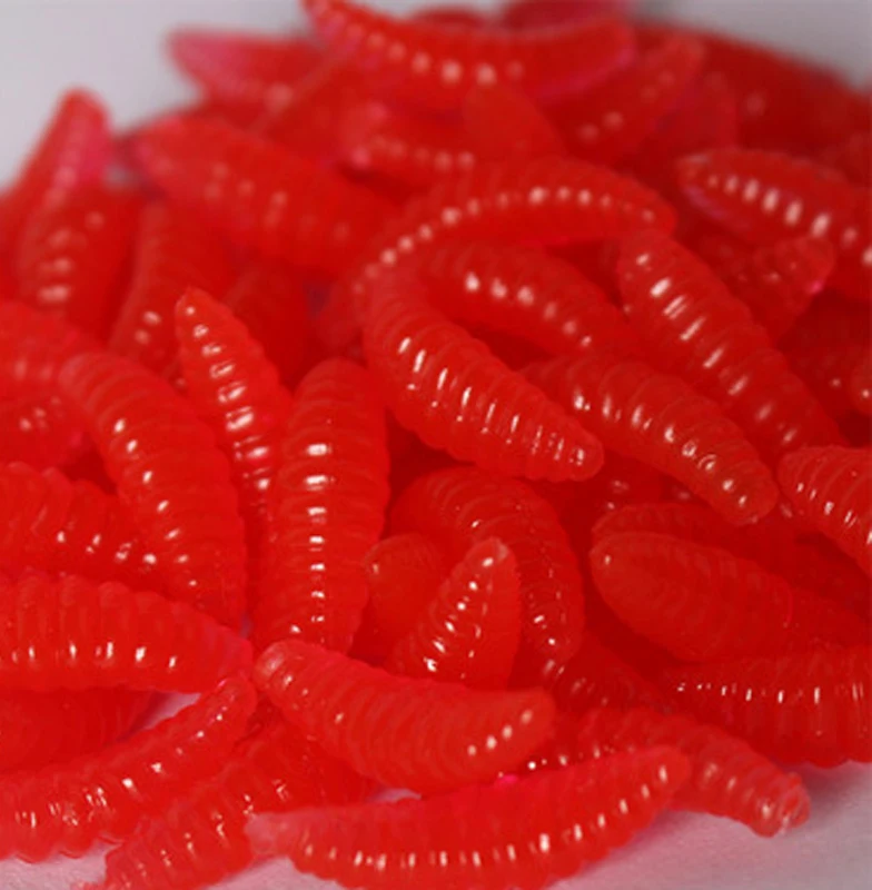 Реалистичные красные Мягкая приманка в виде червя, 50 шт., 20 мм, искусственные силиконовые приманки для ловли хлеба, рыбный запах, добавка креветок, окуня, карпа