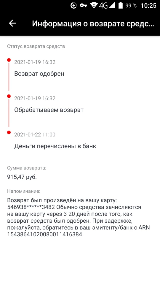 Заказала сумку 6 декабря, в конце декабря обратила внимание, что в отслеживании написано: транспортировка отменена. И продавец об этом знал, но никаких мер не предпринял. В результате после бестолковой переписки с продавцом пришлось открыть спор. Деньги вернули на следующий день. Теперь закажу сумку у другого продавца