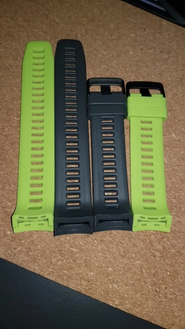 Качество в порядке. Вы можете увидеть на картинке с черным оригинальным браслетом, что есть некоторые различия в качестве. Немного пахло и мягче, затем оригинально. Они имеют четкую сердцевину, покрытую цветным силиконом, который трет iff через некоторое время, просто будьте готовы. Хорошо подходит для моего Garmin Instinct. С радостью найдете другие цвета. У этого браслета отсутствует выемка на внутренней части петель, которая помогает держать их на месте, но я могу с этим жить. Стержни серебристые, два инструмента для замены были включены.