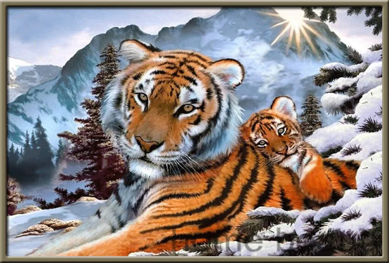 Алмазная картина сделай сам с рамкой, тигр, картина для Стразы, дом...
