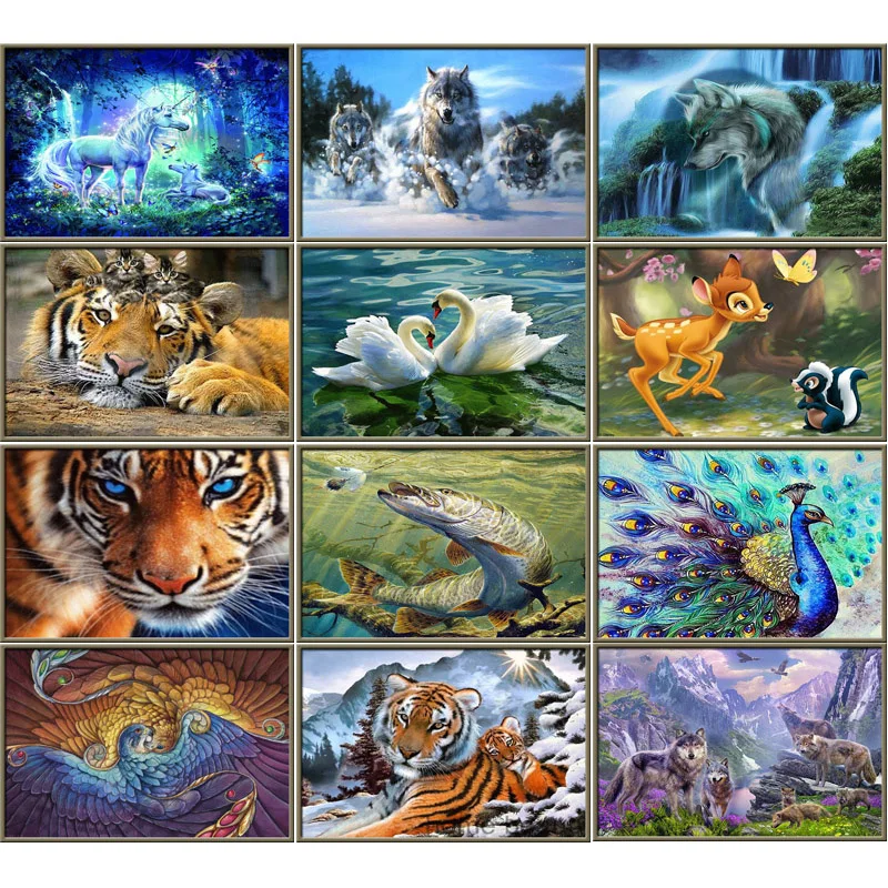 5D алмазная живопись, животные, лошадь, Алмазная мозаика, тигр, Лев...