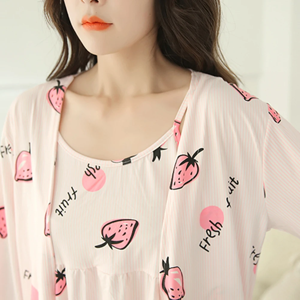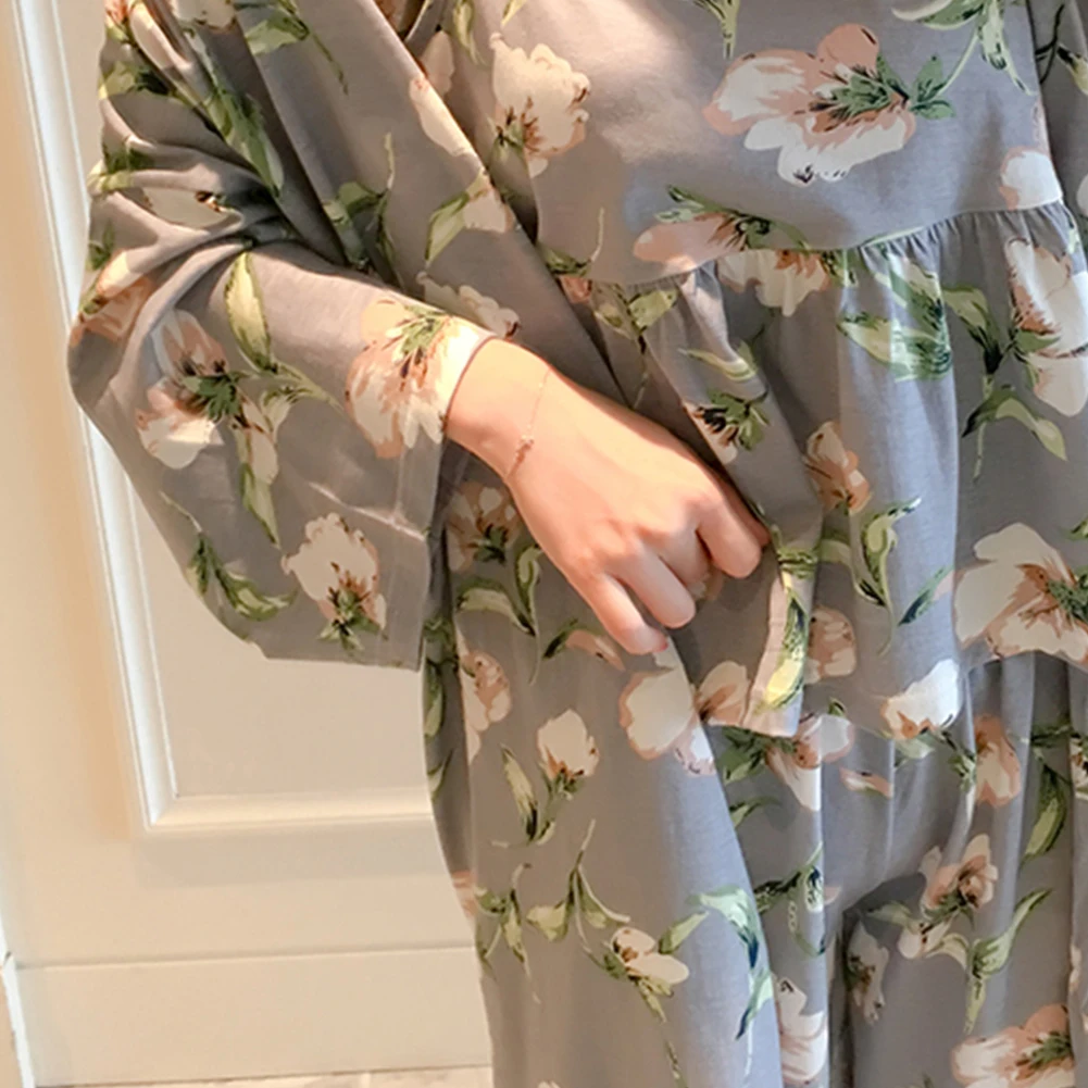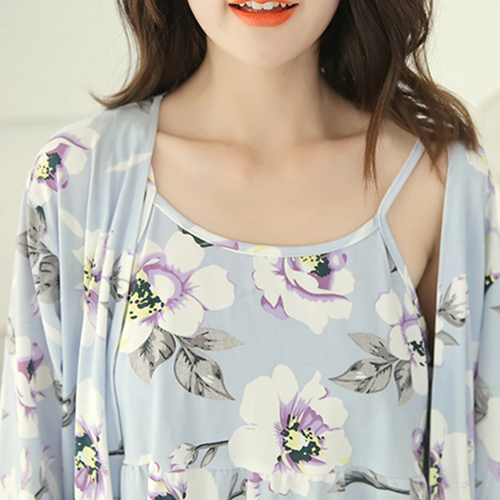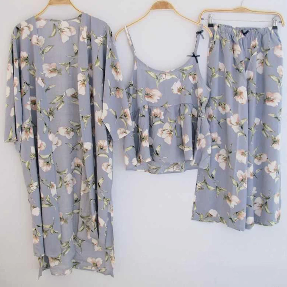 Комплект для сна Женский, из 3 предметов, Кардиган с длинным рукавом и цветочным принтом, длинные штаны, мягкий, приятный для кожи