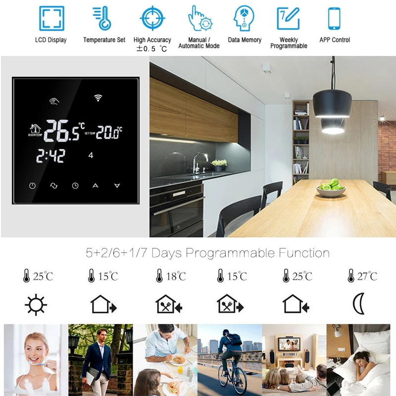 4 шт.упак . Black16A Wi -Fi Электрический термостат программируемый напольного нагрева комнаты Температура контроллер 220-240V