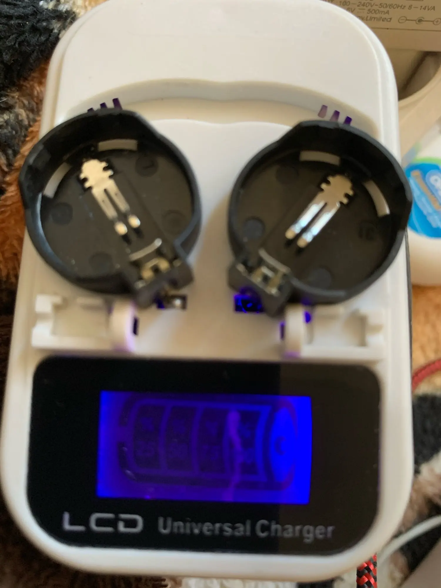 Mooi Europese stekker er aan om die kleine batterijen op te laden 2032.....met de oplader twee te gelijk