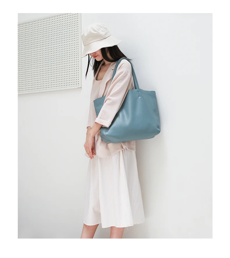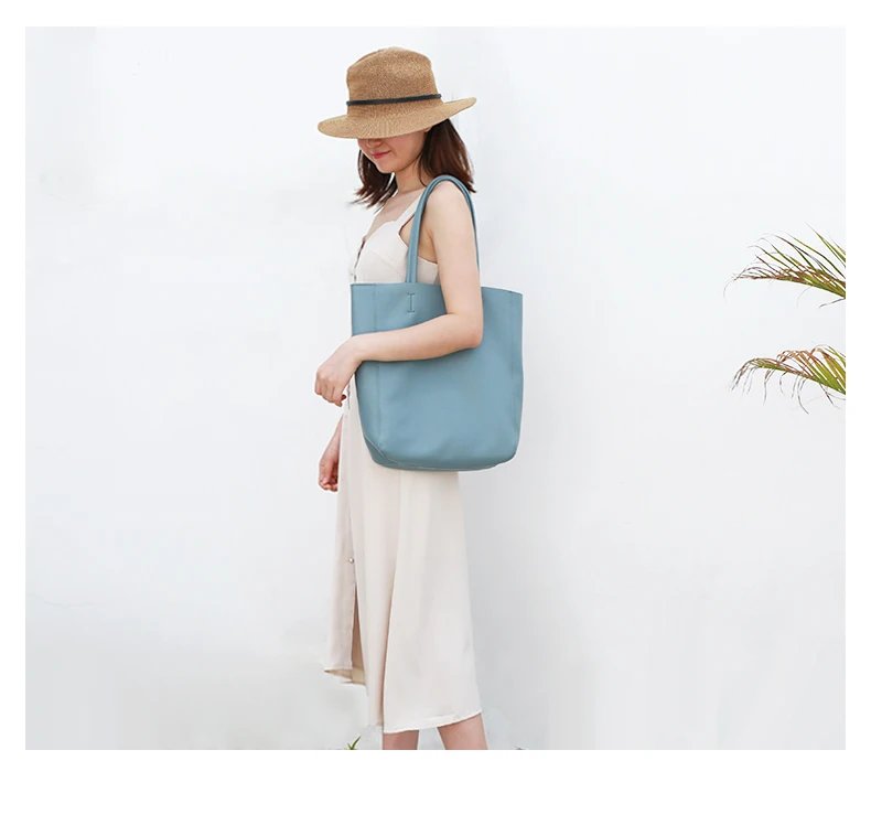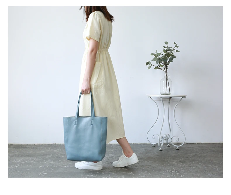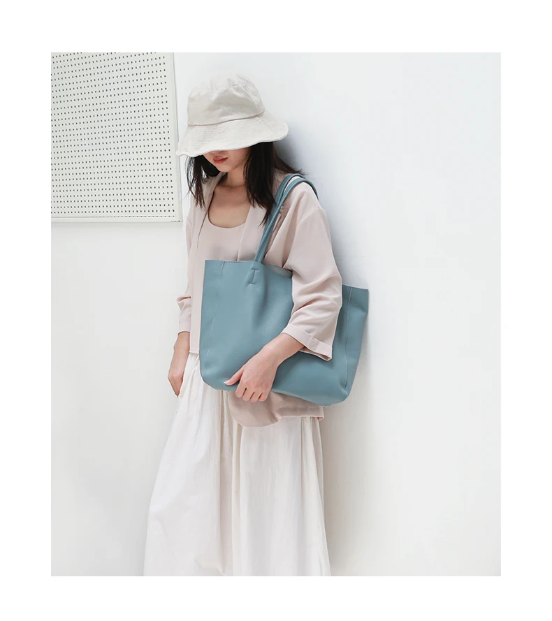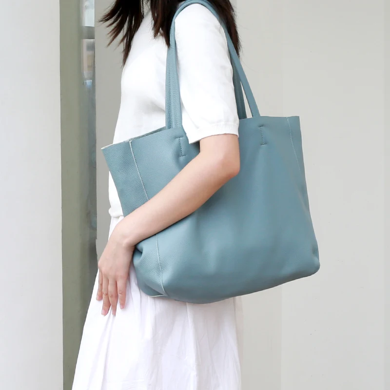 Сумка-тоут женская из натуральной воловьей кожи, голубая