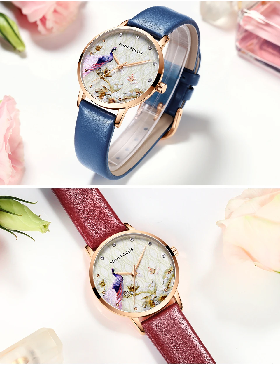 MINIFOCUS элегантные женские кварцевые часы, женские кожаные модные...