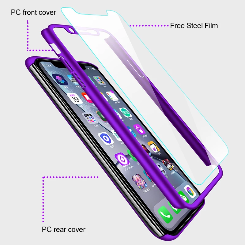 Защитный чехол с полным покрытием 360 градусов для iPhone 11 Pro Max, чехлы для iPhone 5 5S SE 6 6S 7 8 Plus X XR XS Max, чехол с закаленным стеклом