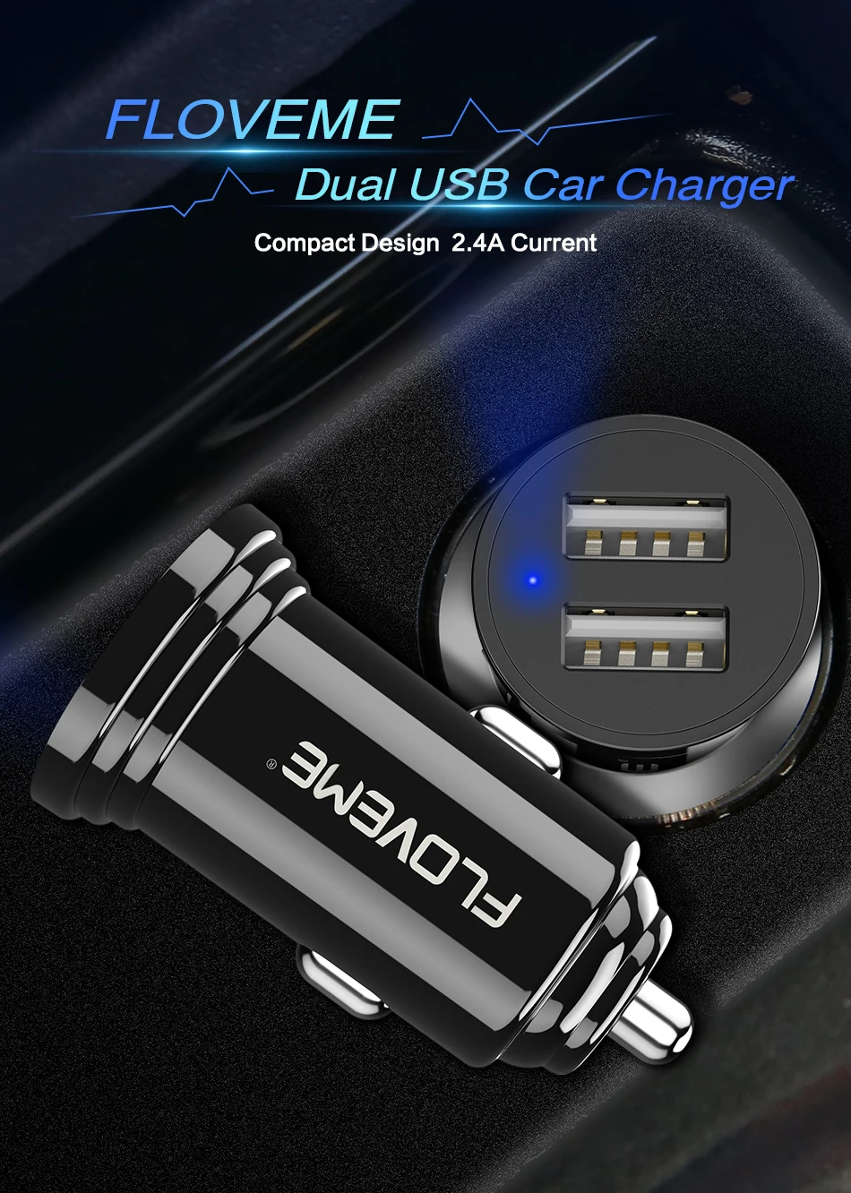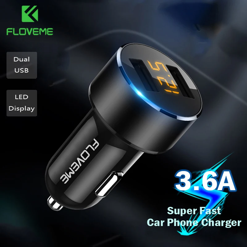 FLOVEME Мини Автомобильное зарядное устройство для телефона двойное автомобильное зарядное устройство USB для iPhone 7 8 Plus 3.6A 2.4A со светодиодным дисплеем автомобильное зарядное устройство USB мобильный телефон